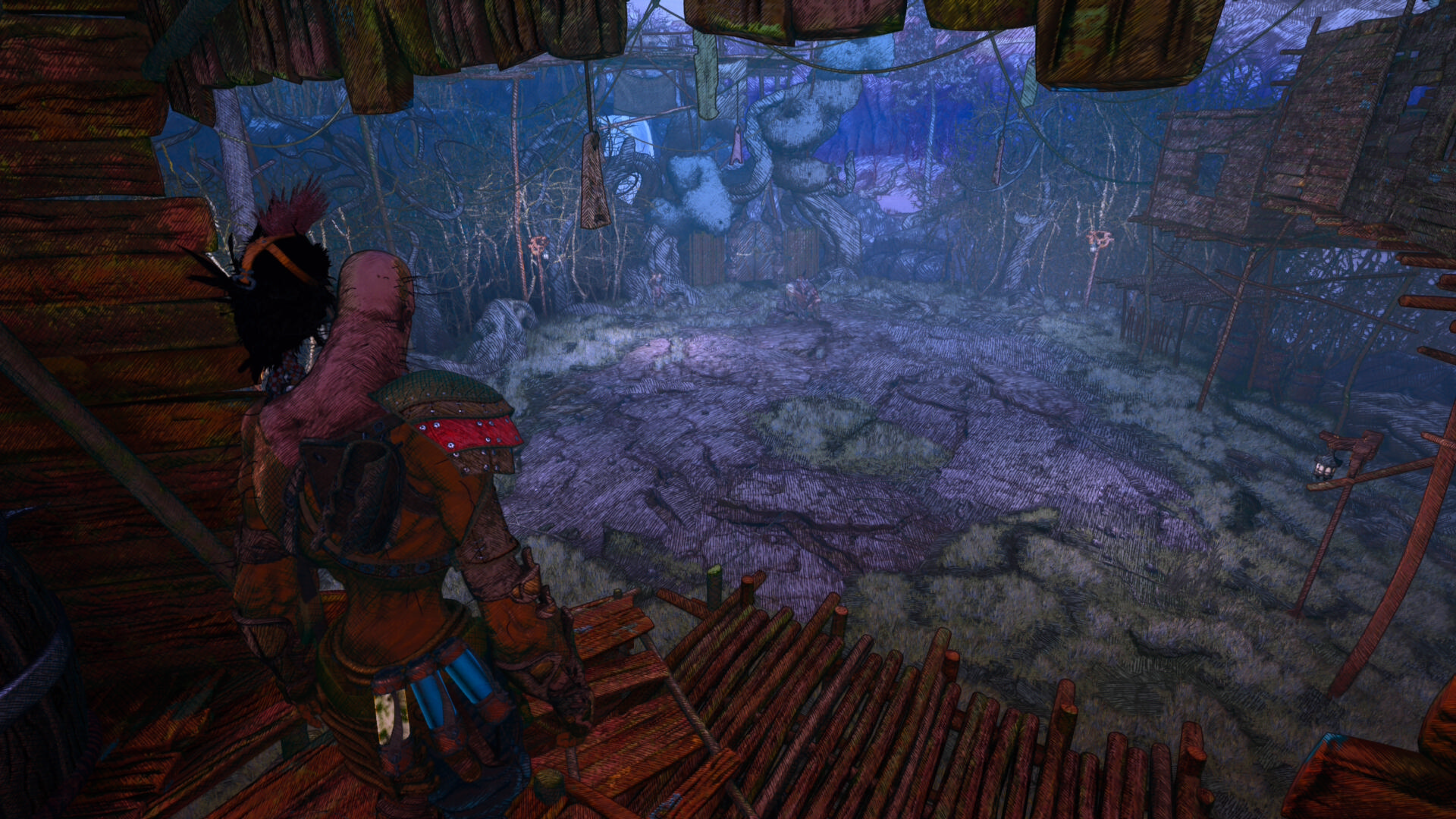 - 橋を渡った先に NPC がおり、近づくとカットシーン