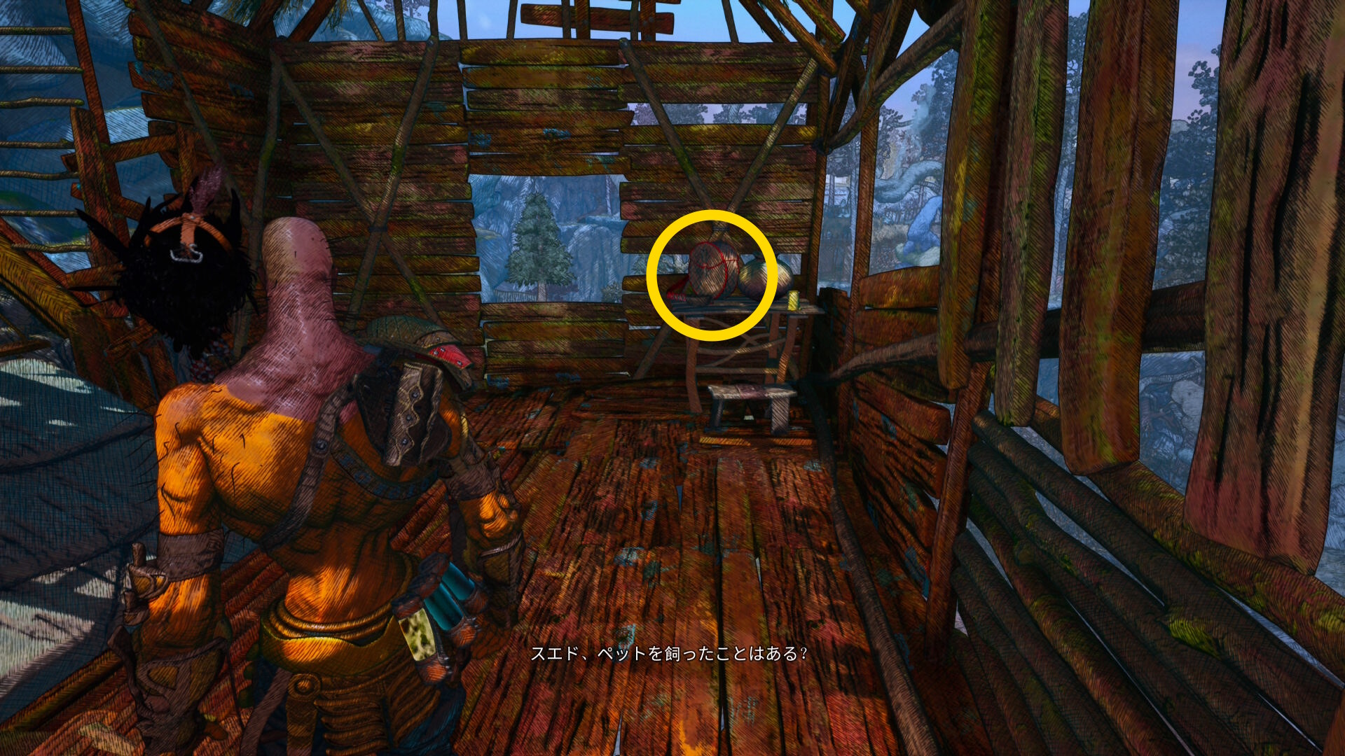 - なお、キャンプを出て壁を登り、左の階段を下りたところにオレンジの太っちょ(夜)がいる