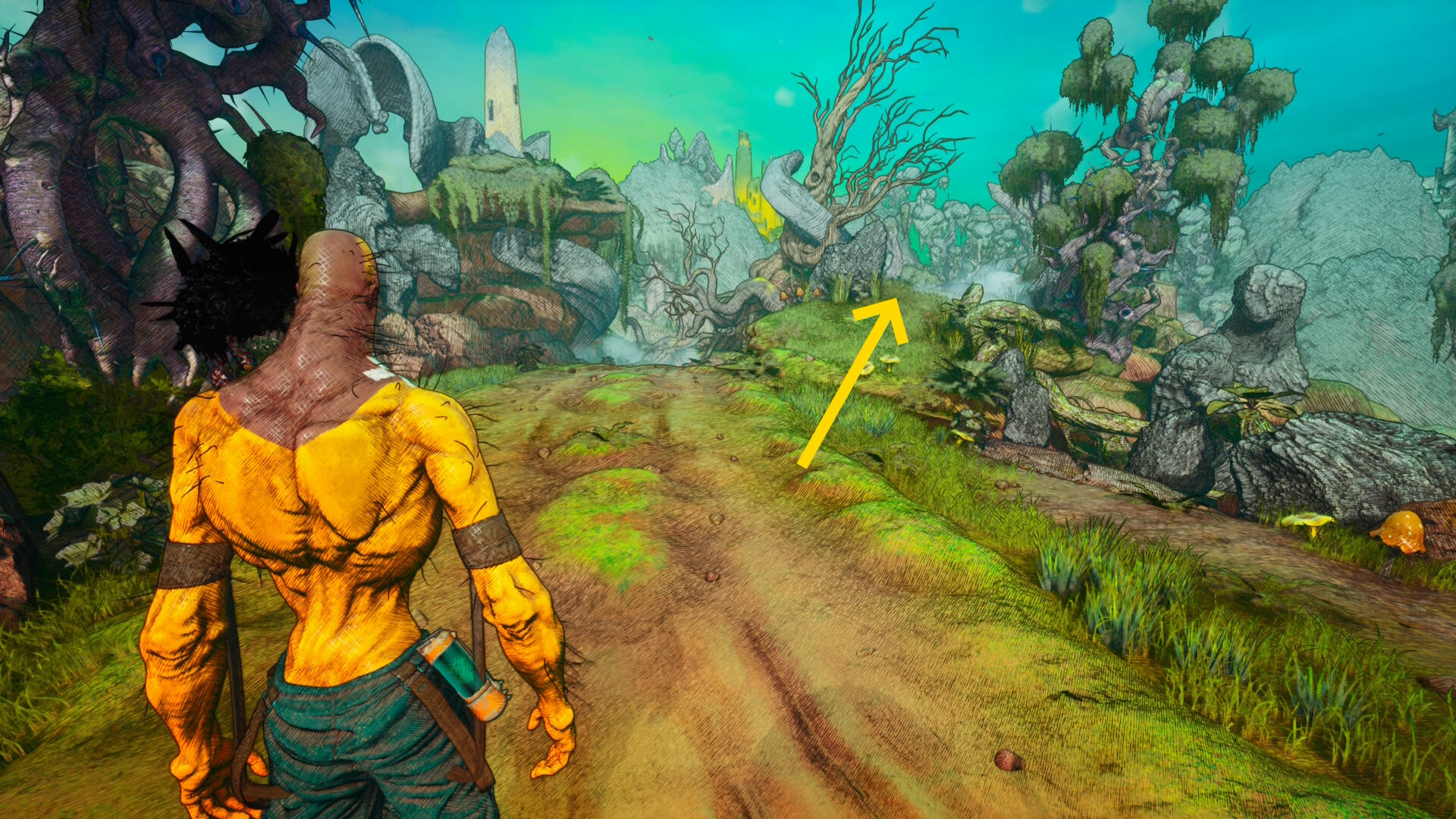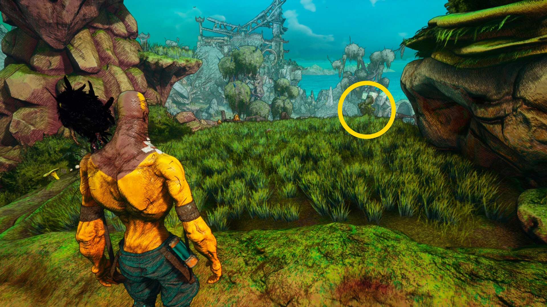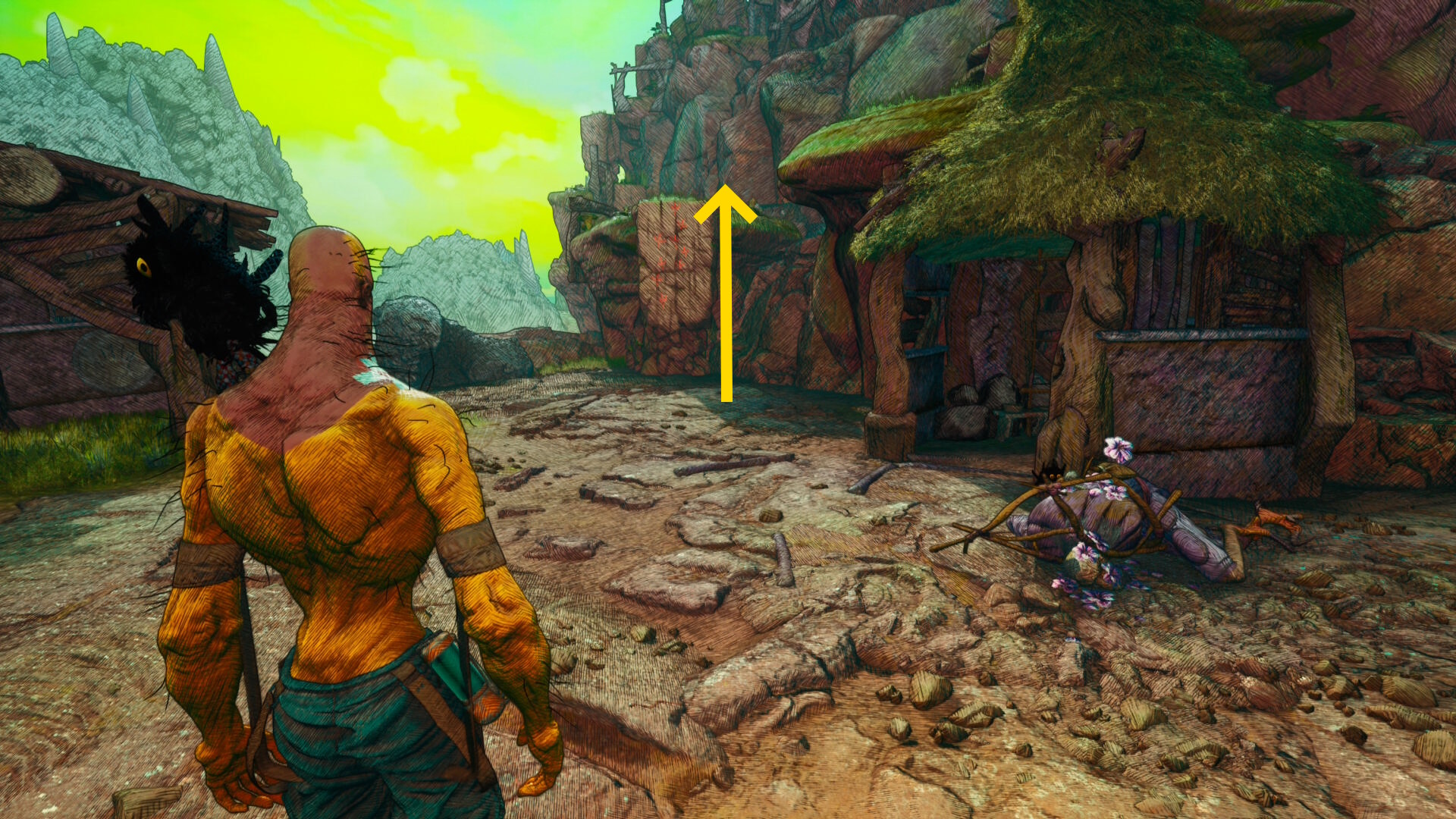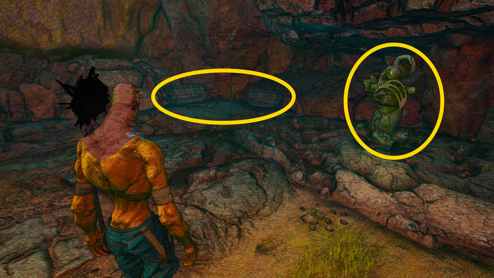 - 洞窟の奥に進み、壁を登って外に出る