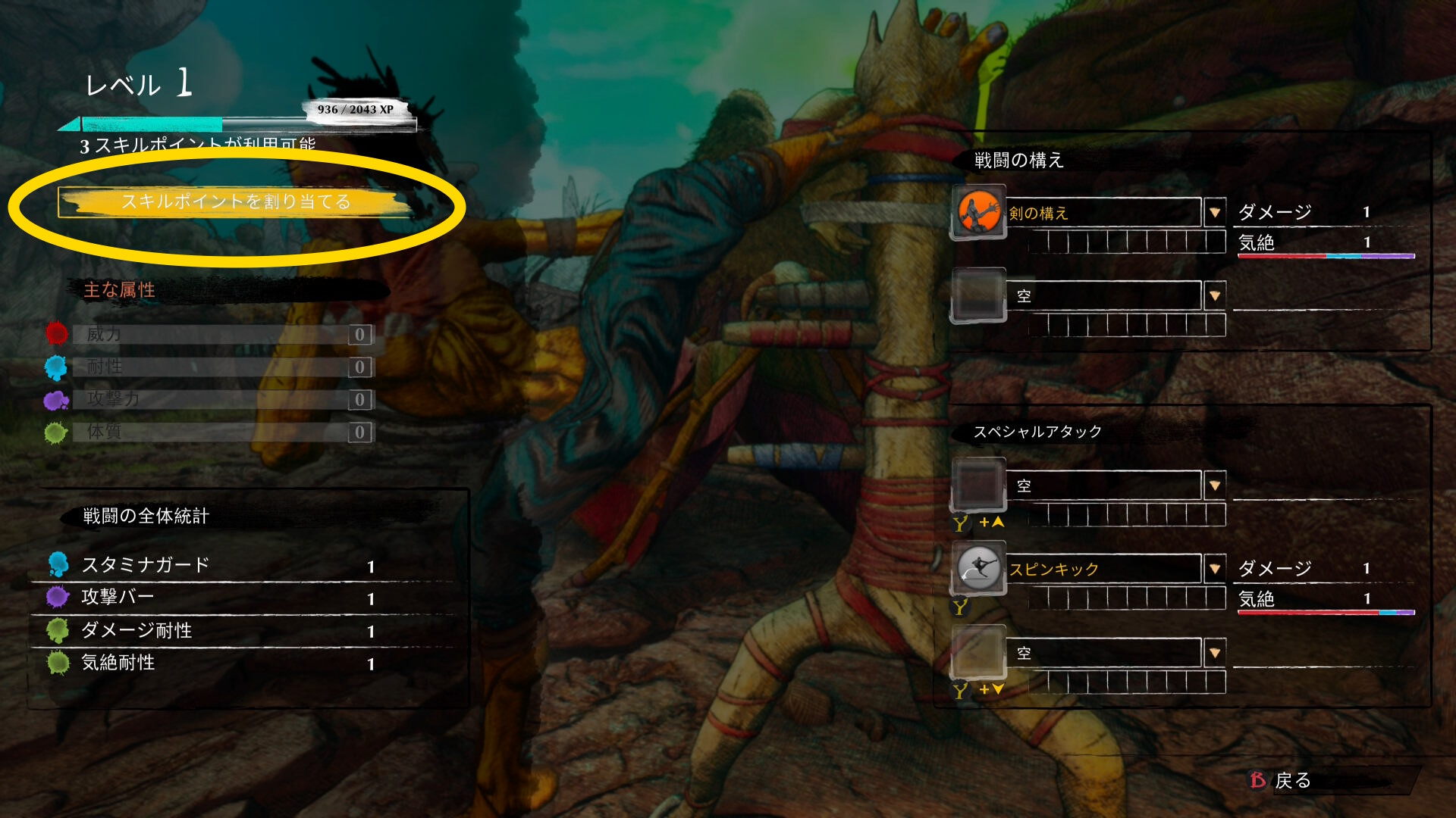 - 画面が変わったら LS を左に入力すると「スキルポイントを割り当てる」が黄色になる
