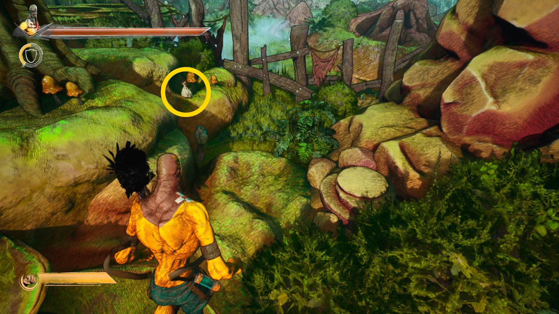 - トーテムの前で RB を押すと異世界の闘技場に移動し、そこにいる敵と戦闘になる