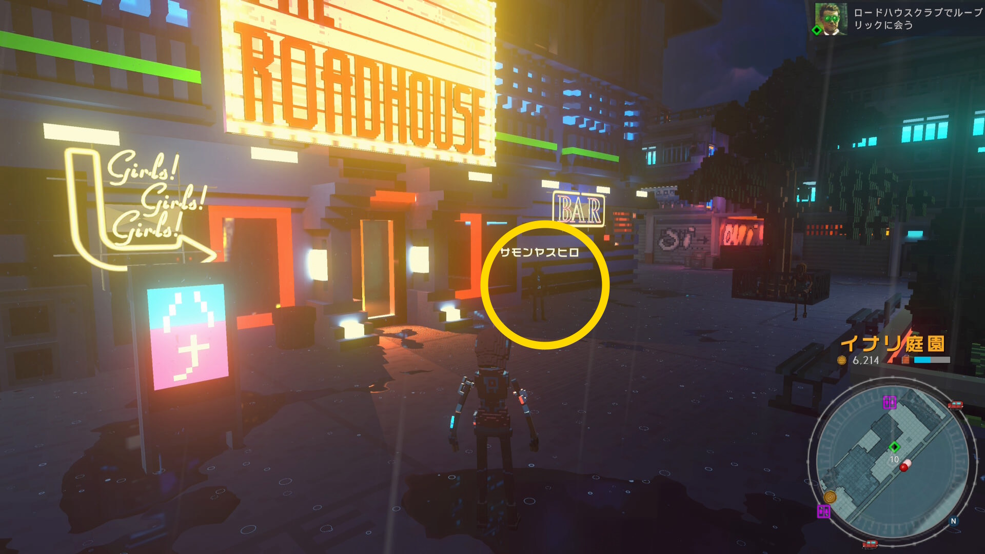 - イナリ庭園の北側エリアで車を降りたら、ミッションマーカーに向かうと「サモンヤスヒロ」という男性がいるので会話し、荷物を受け取る