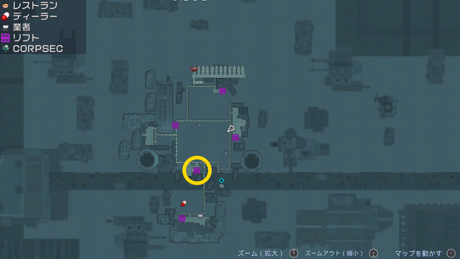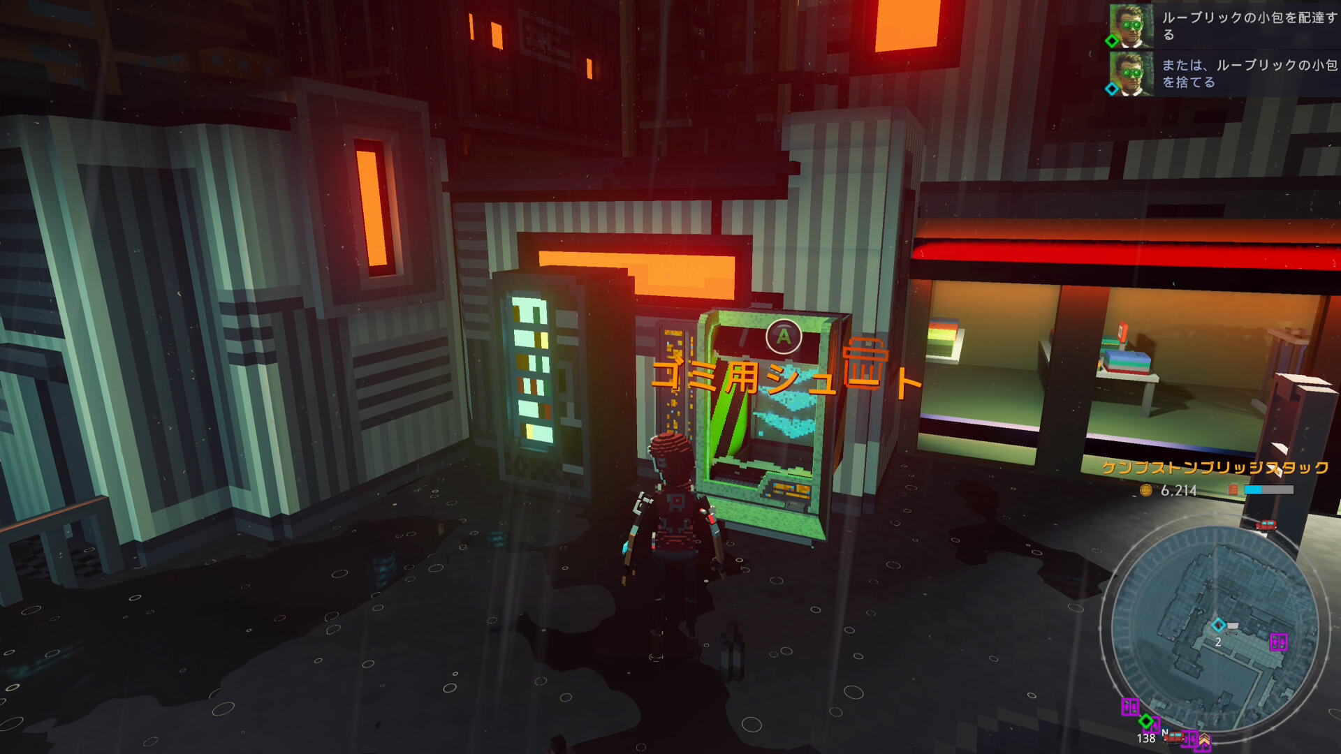 - 南西にあるリフトで下層におり、ミッションマーカーのところにゴミ用シュートがあるので、ルーブリックの小包を捨てる