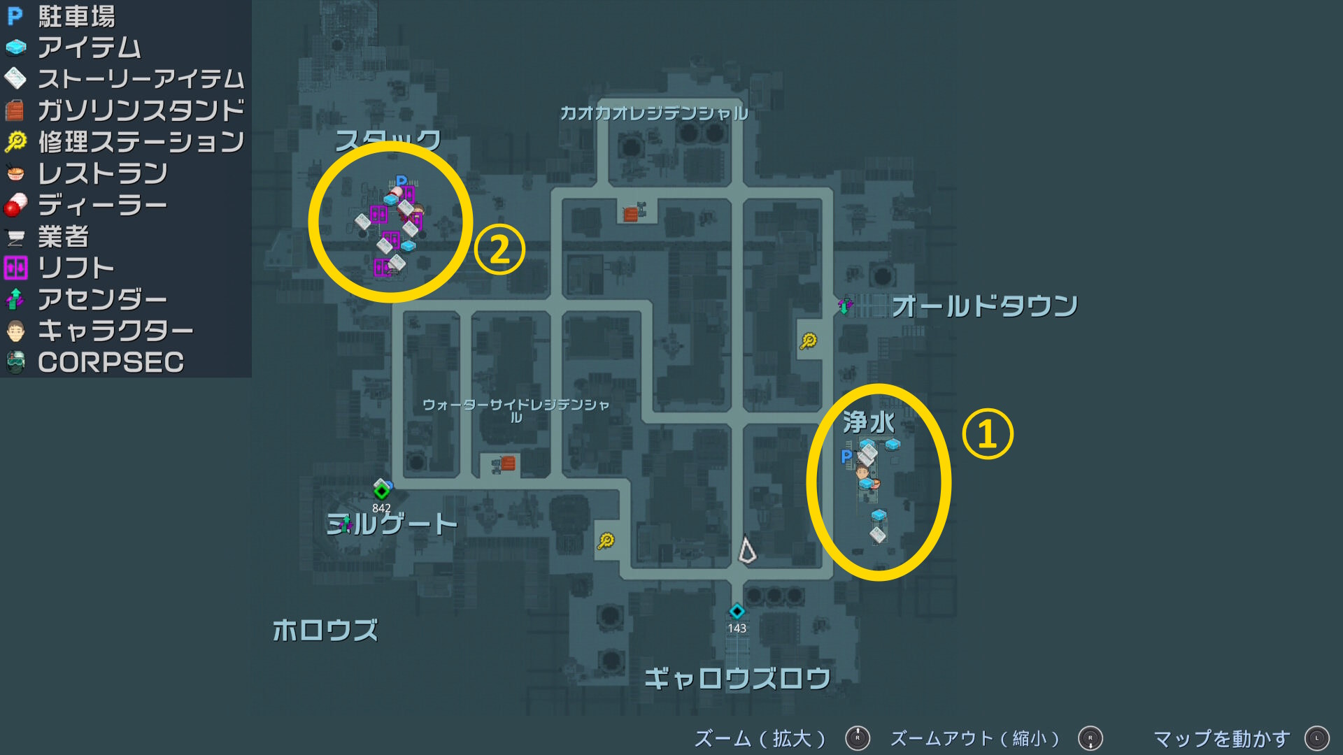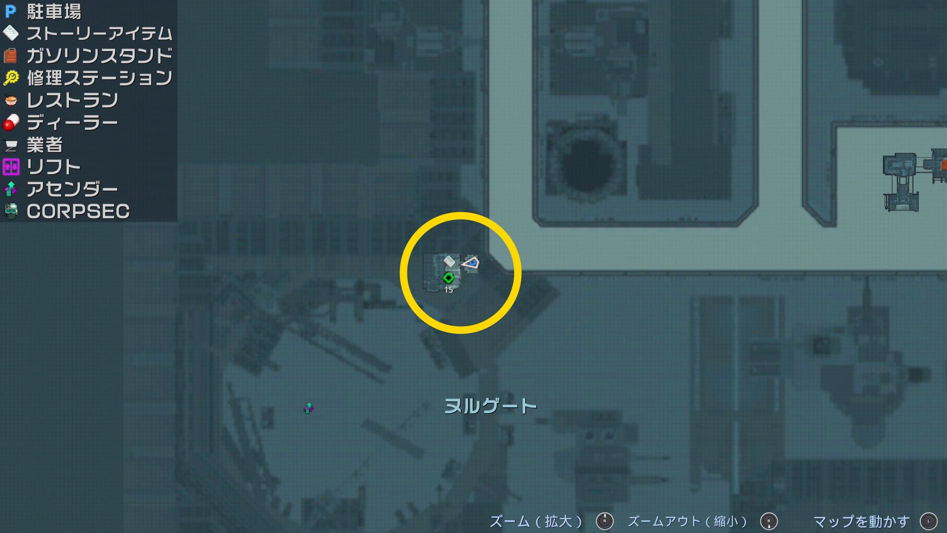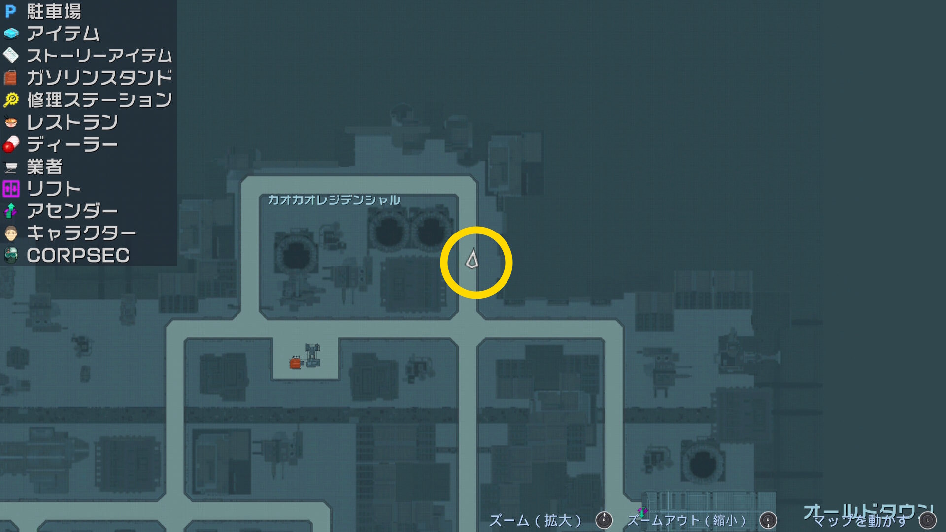 - 車に戻ろうとするも駐車場のセキュリティが起動して戻れないので、売却アイテムを回収しながら東に向かう