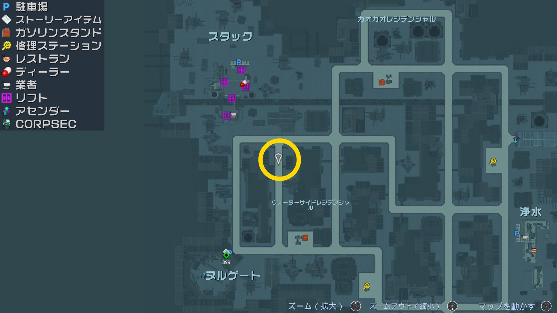 - 商業地区を出たら北西のウォーターサイドに向かうが、その前に以下を行う