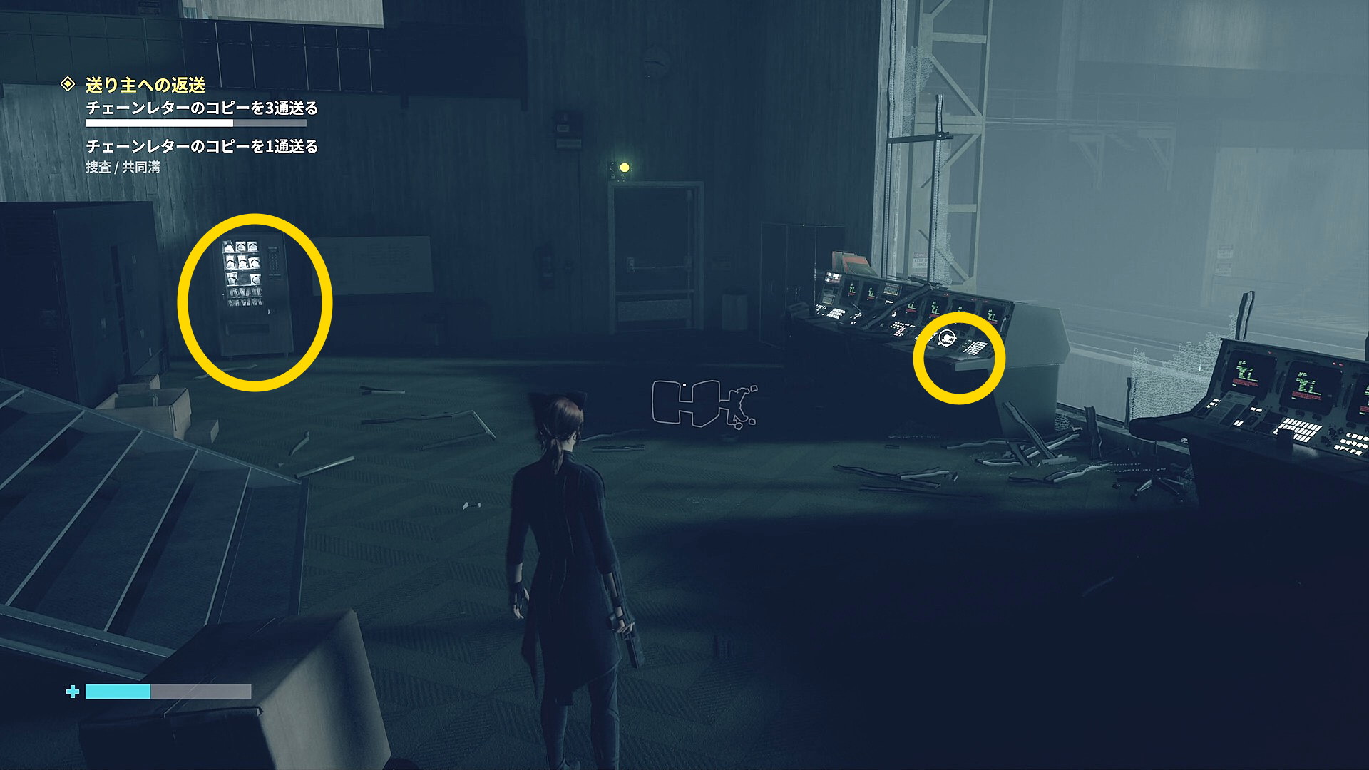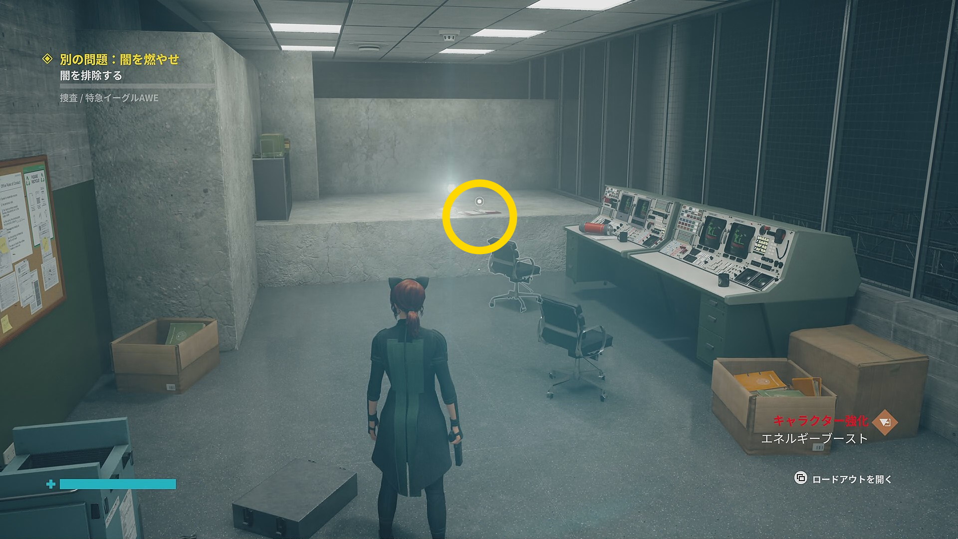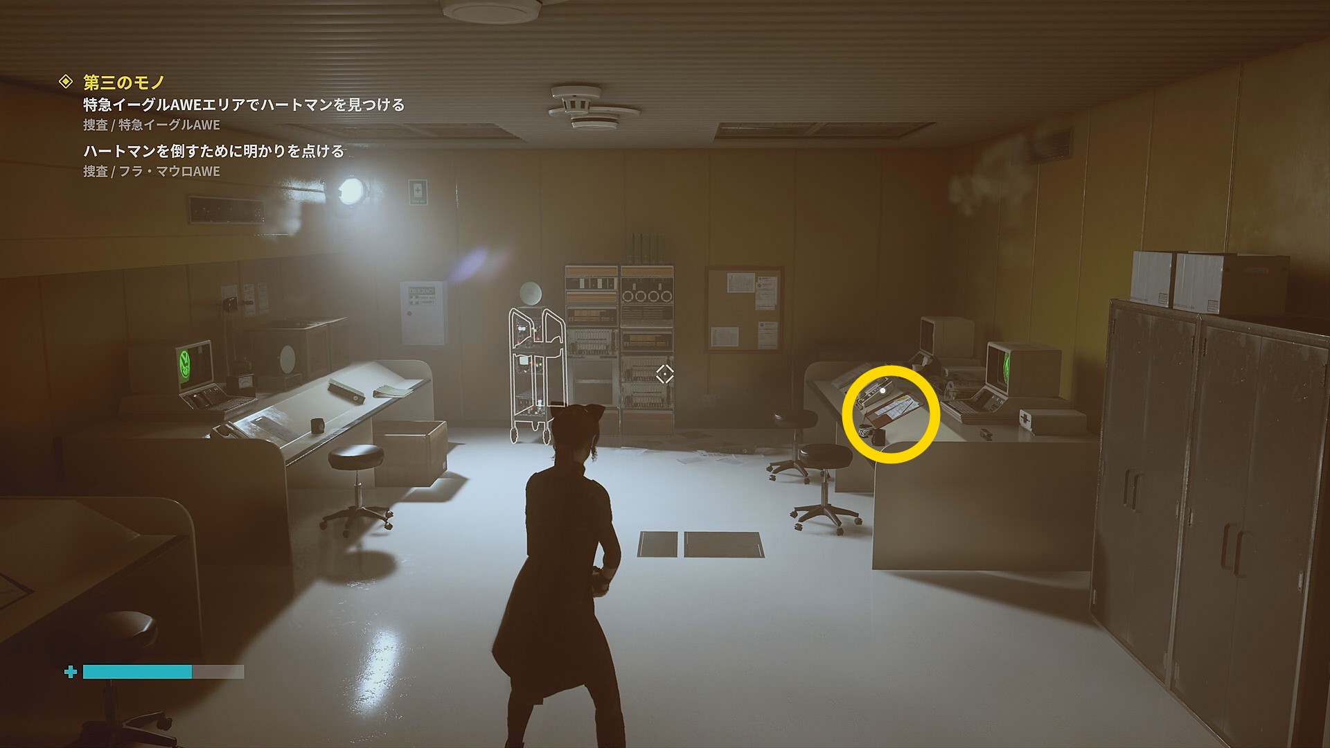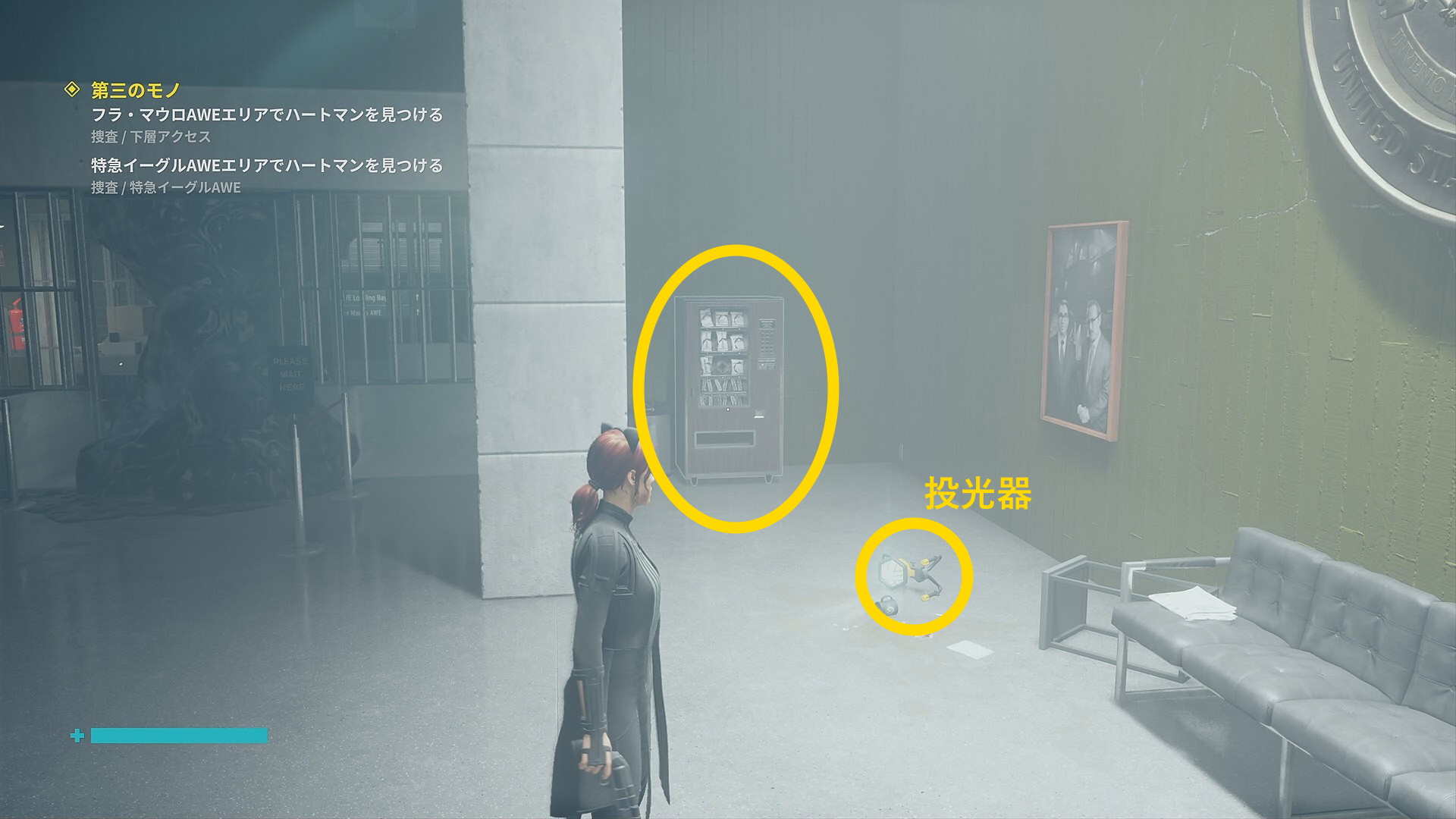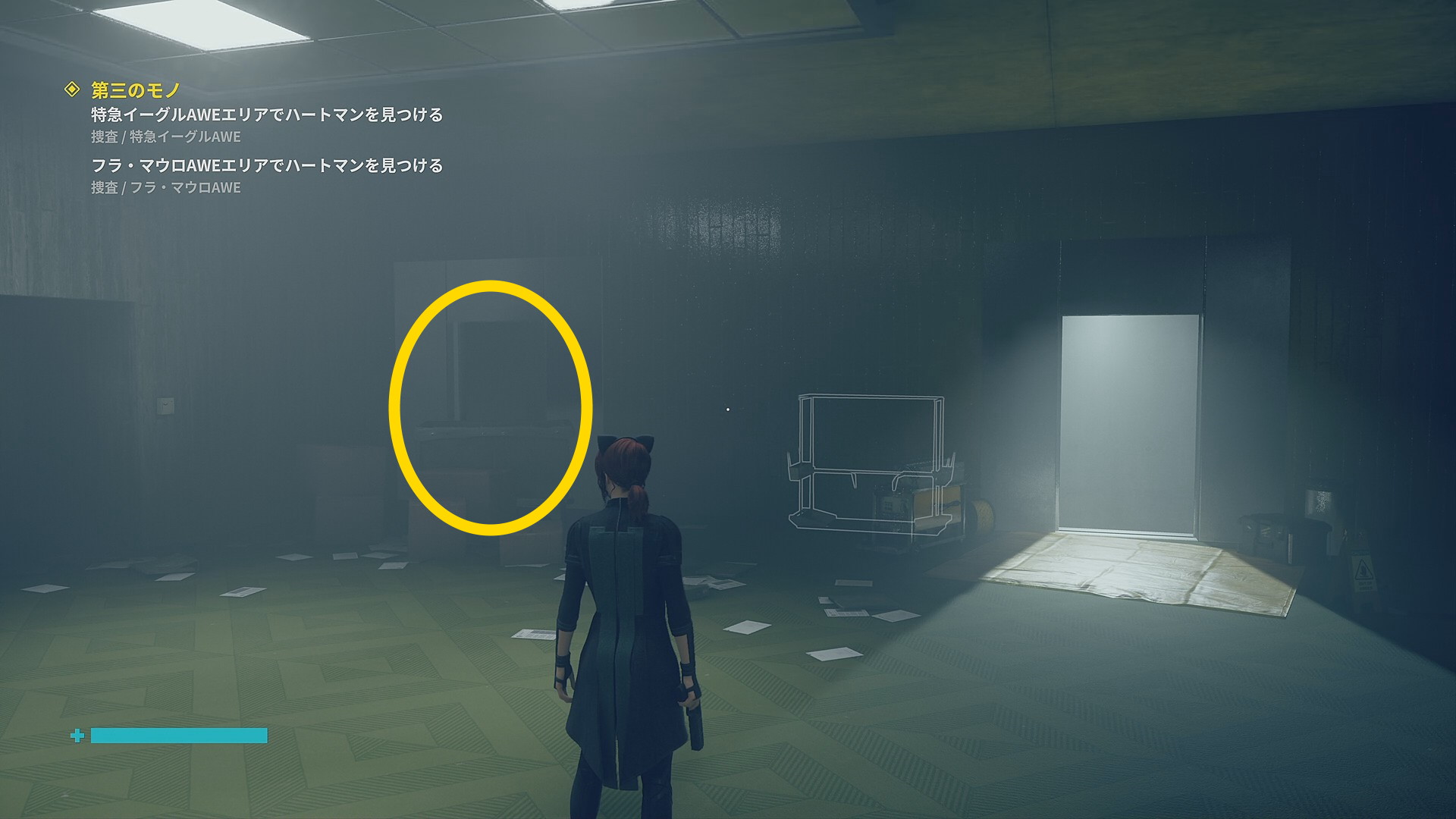 • 「行方不明のエージェント」を回収後、左側の薄暗い部屋に入る
