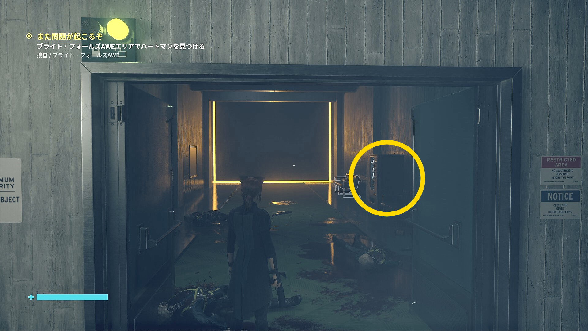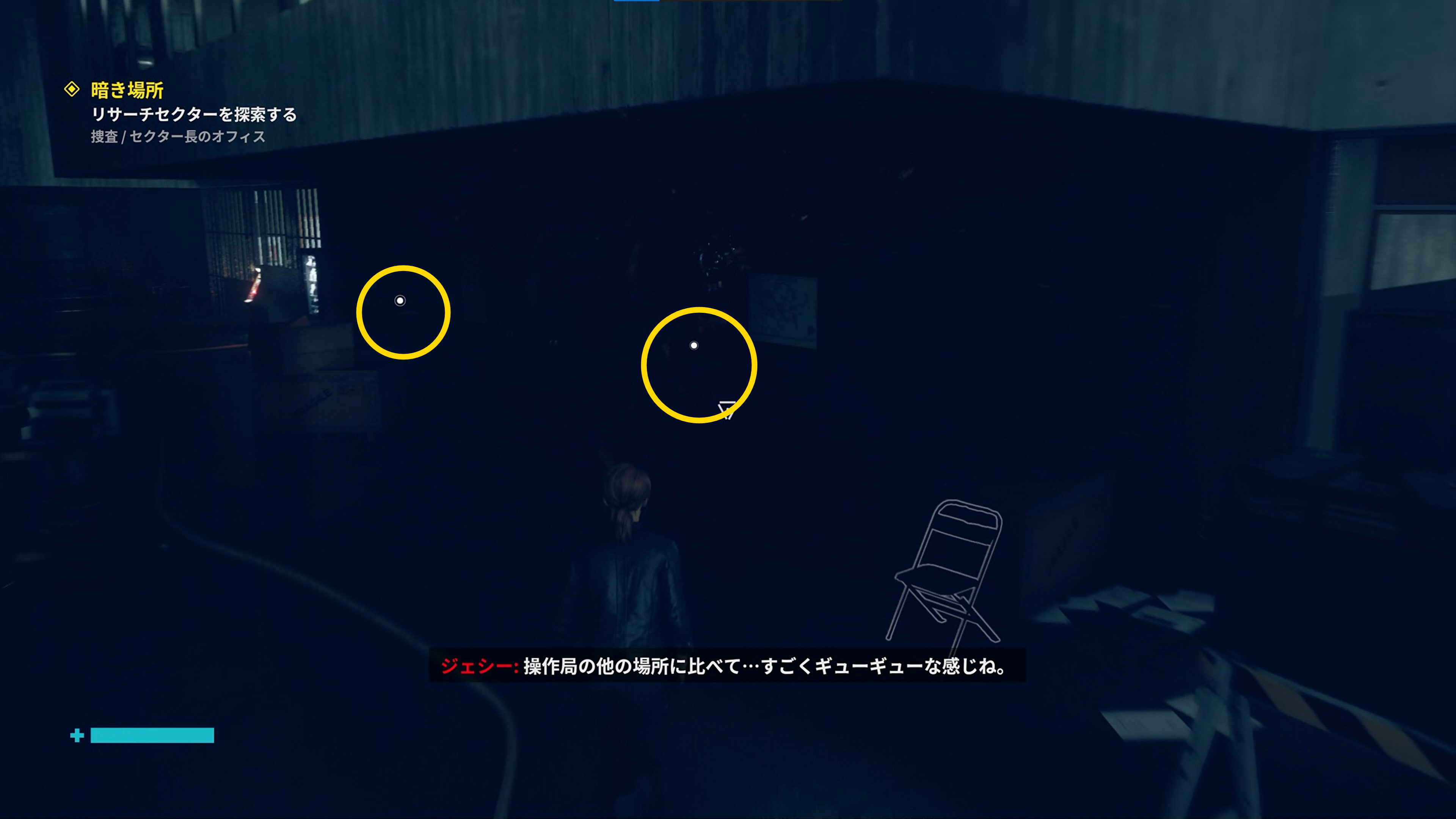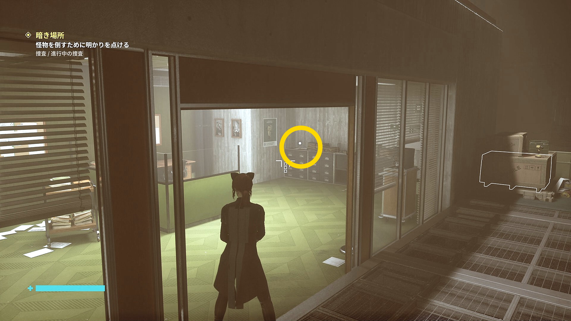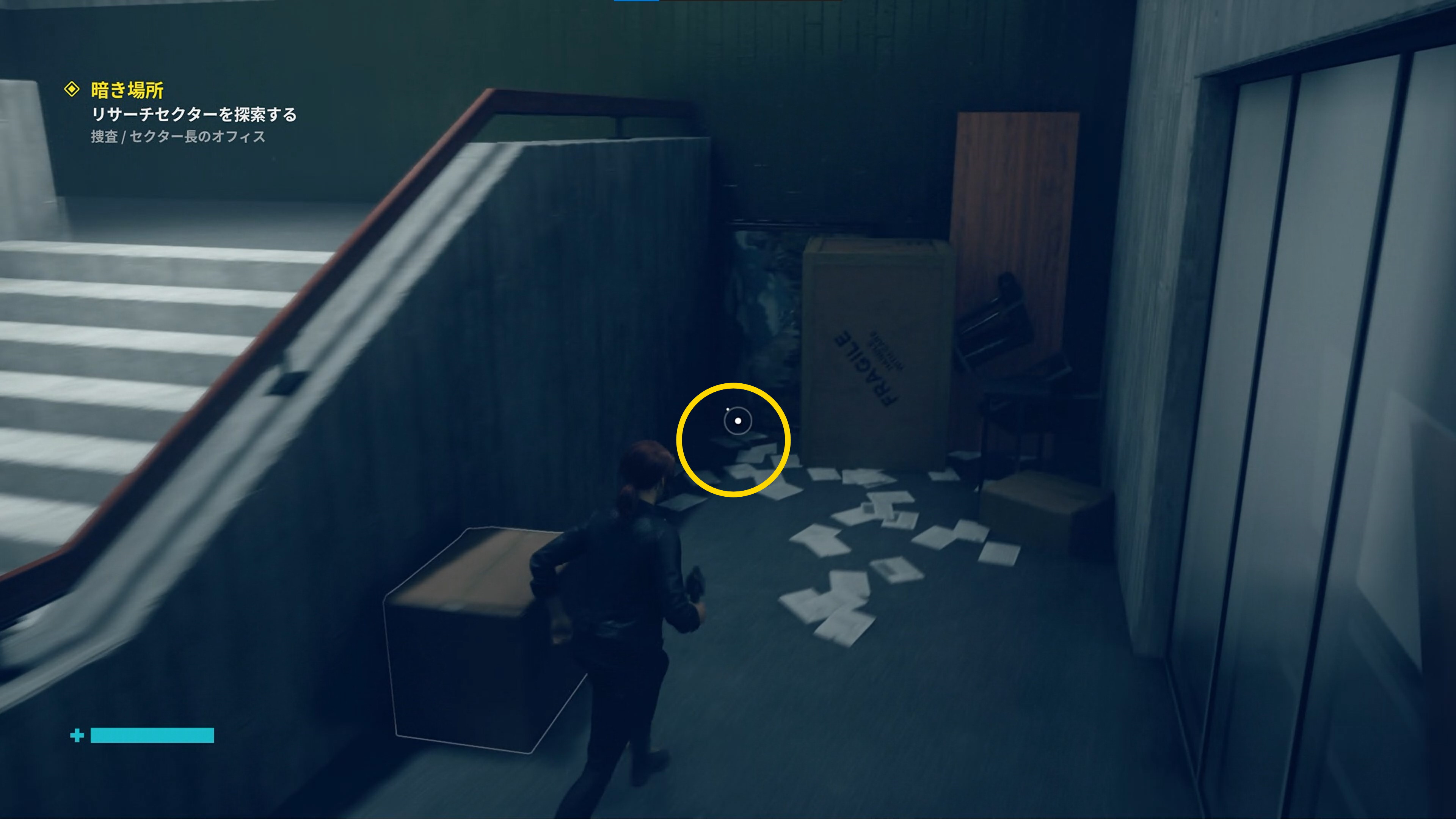 • 「行方不明のエージェント」を回収後、左側の薄暗い部屋に入る
