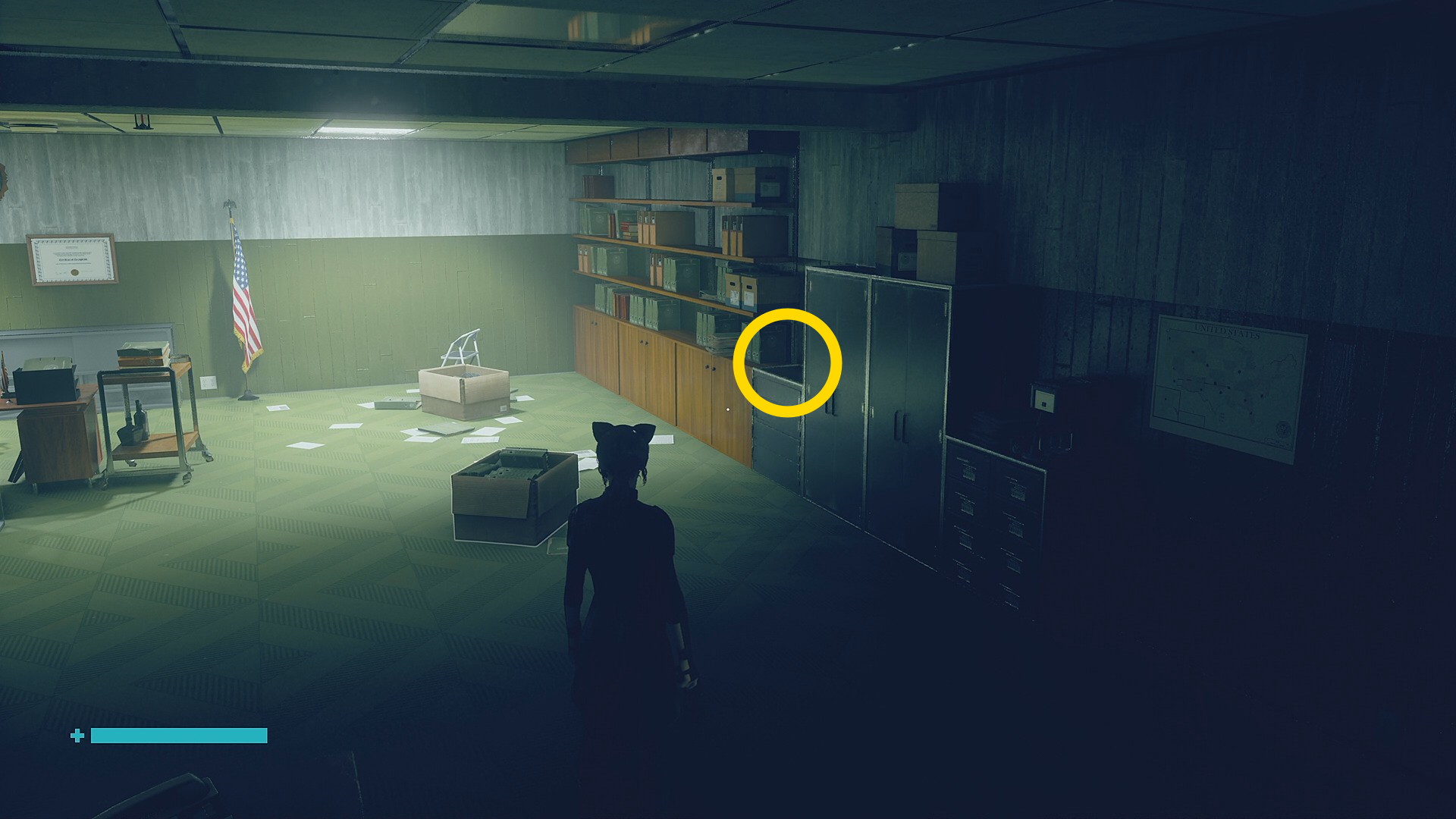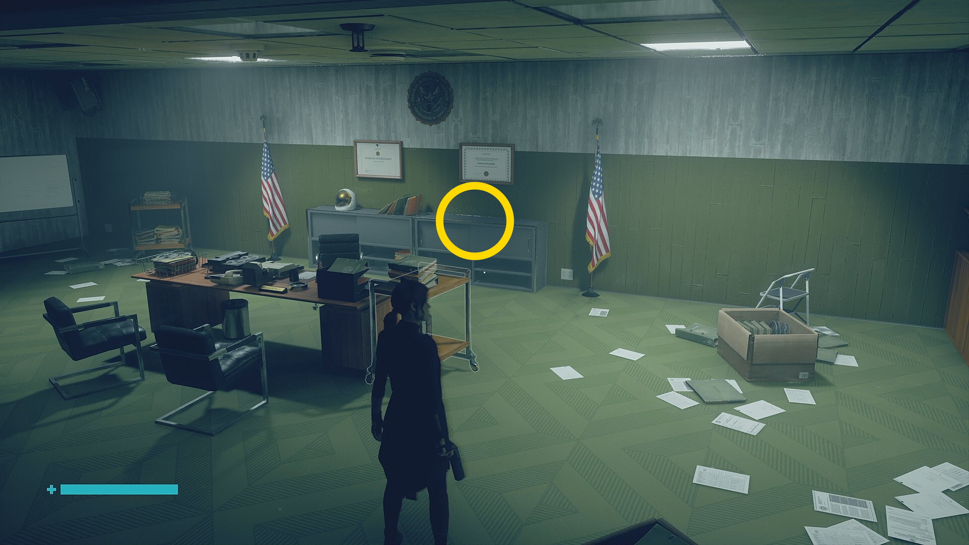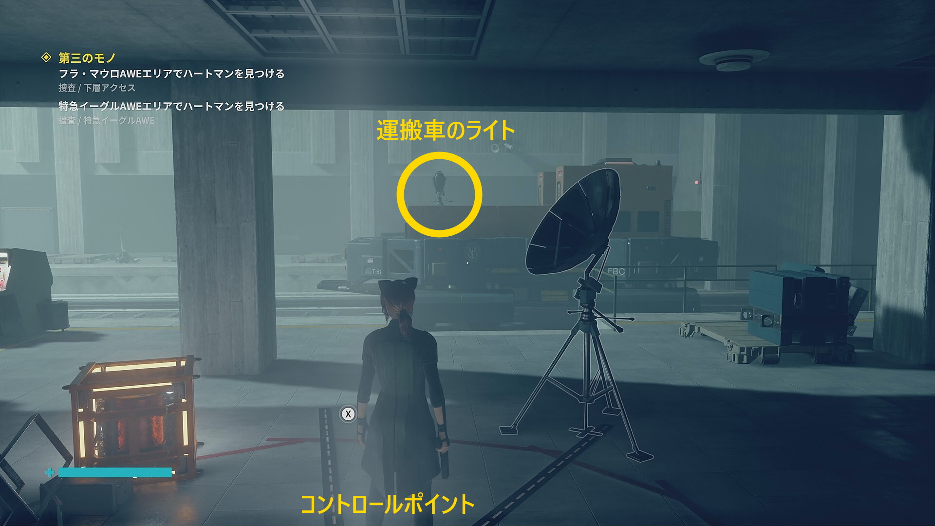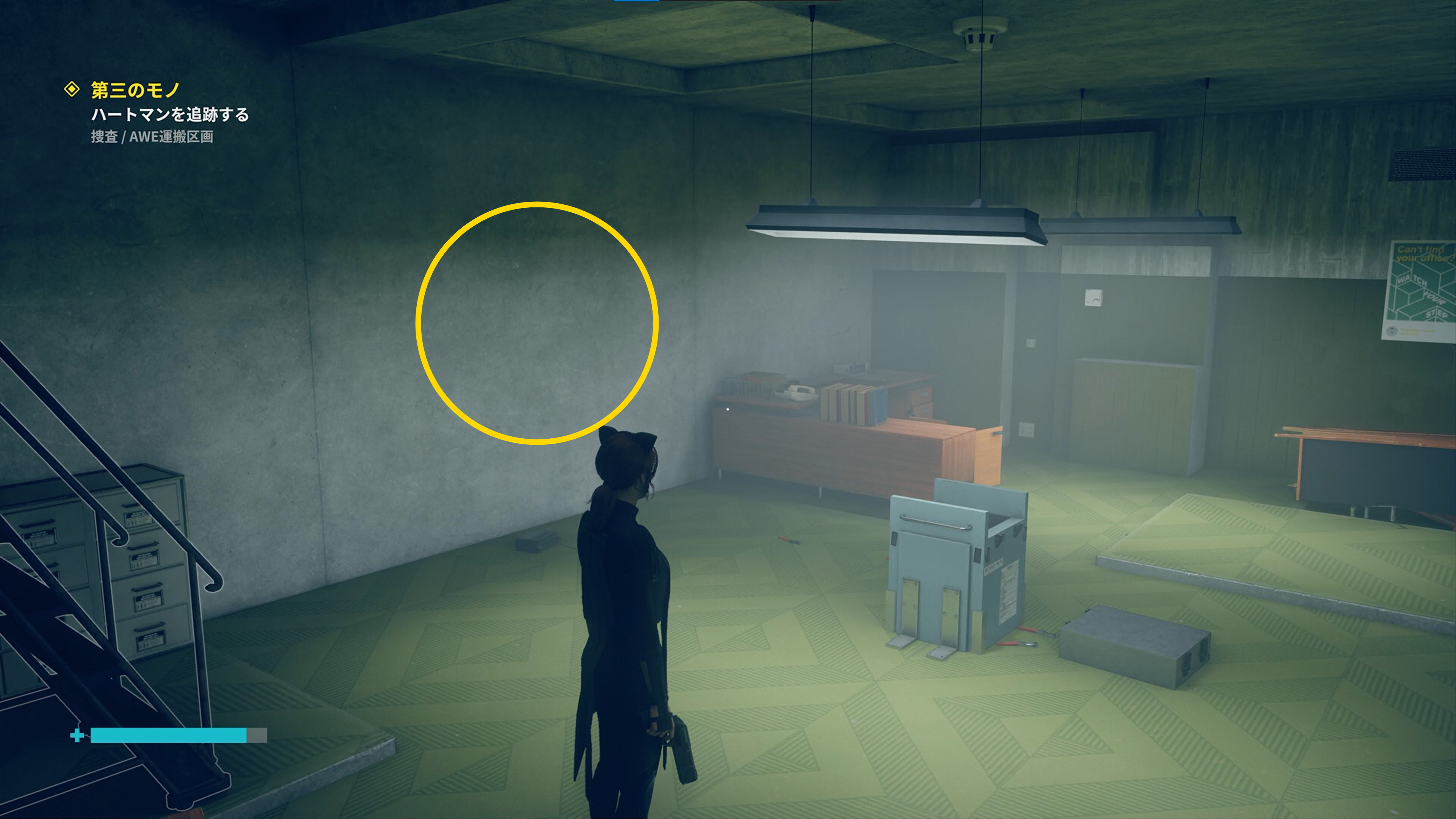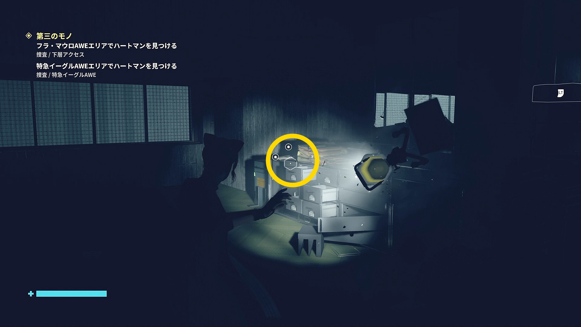 • 「行方不明のエージェント」を回収後、左側の薄暗い部屋に入る