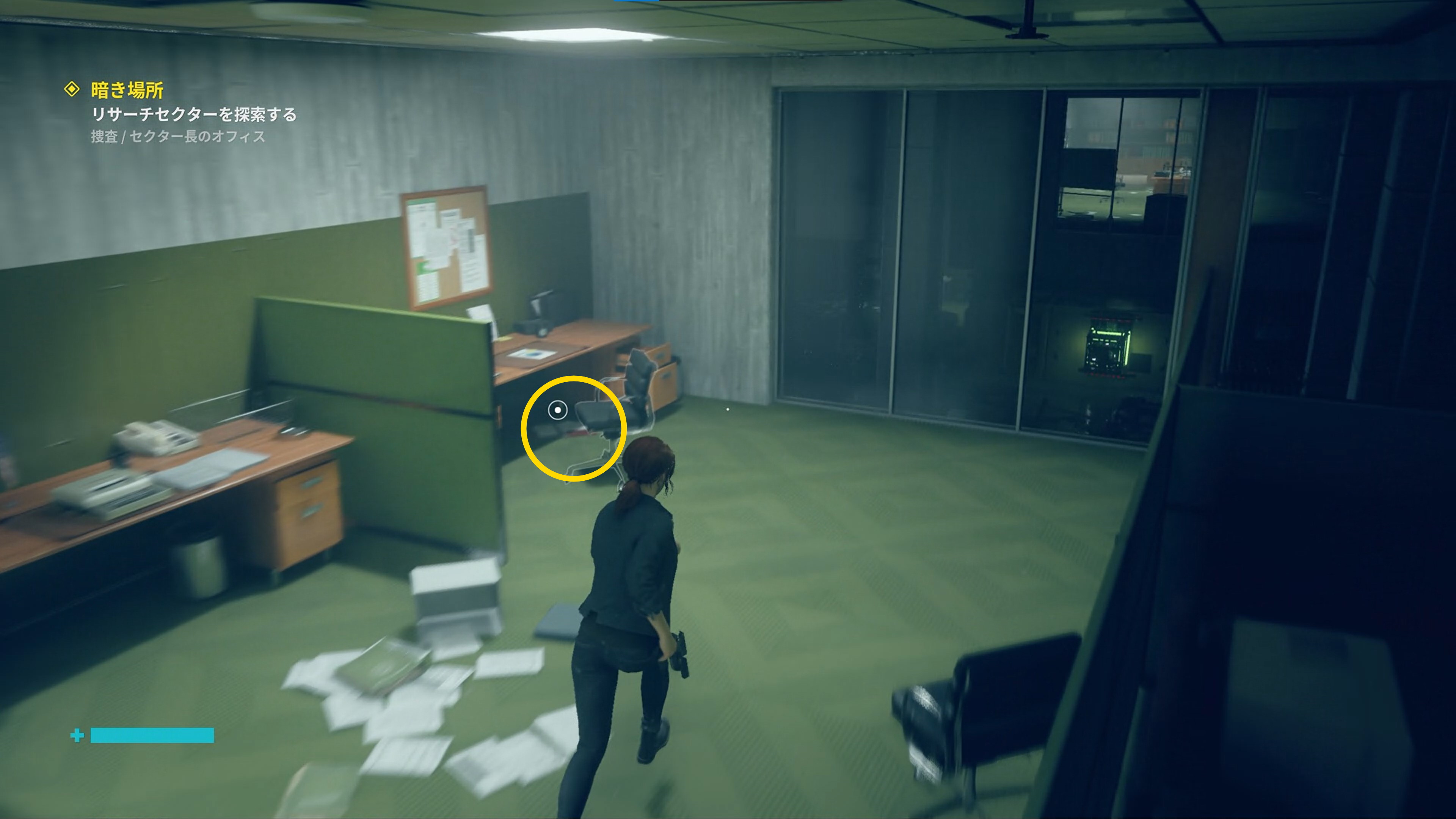 • バッテリーをはめ直したら、コントロールルームの大きな窓ガラスを破壊しておく