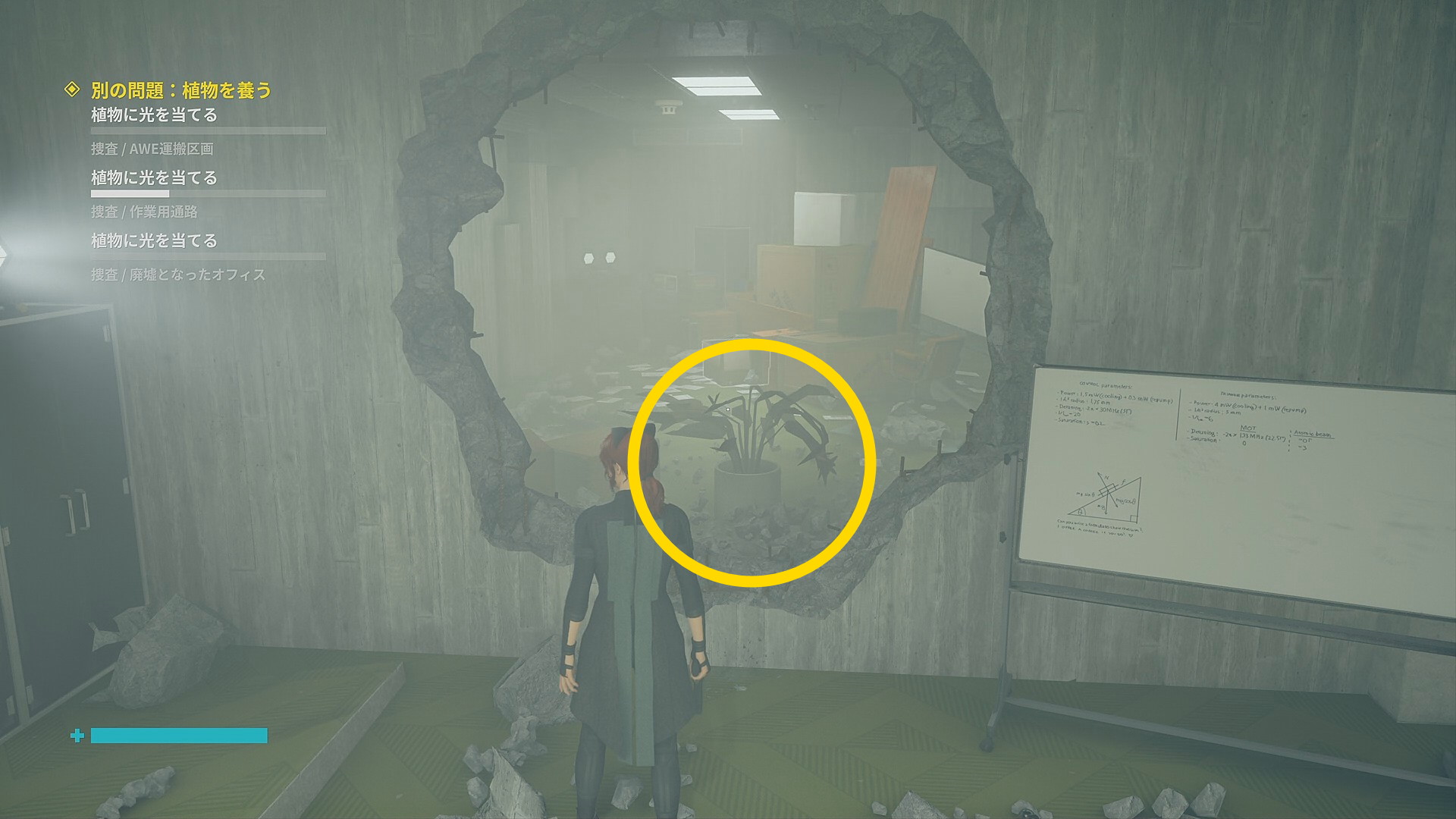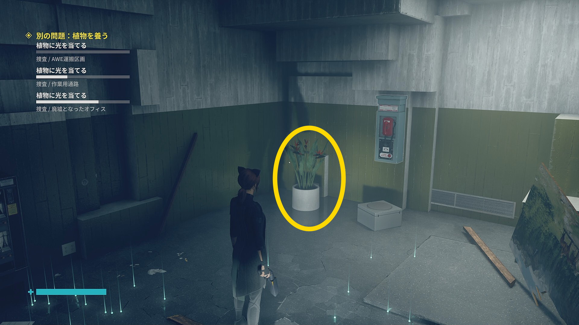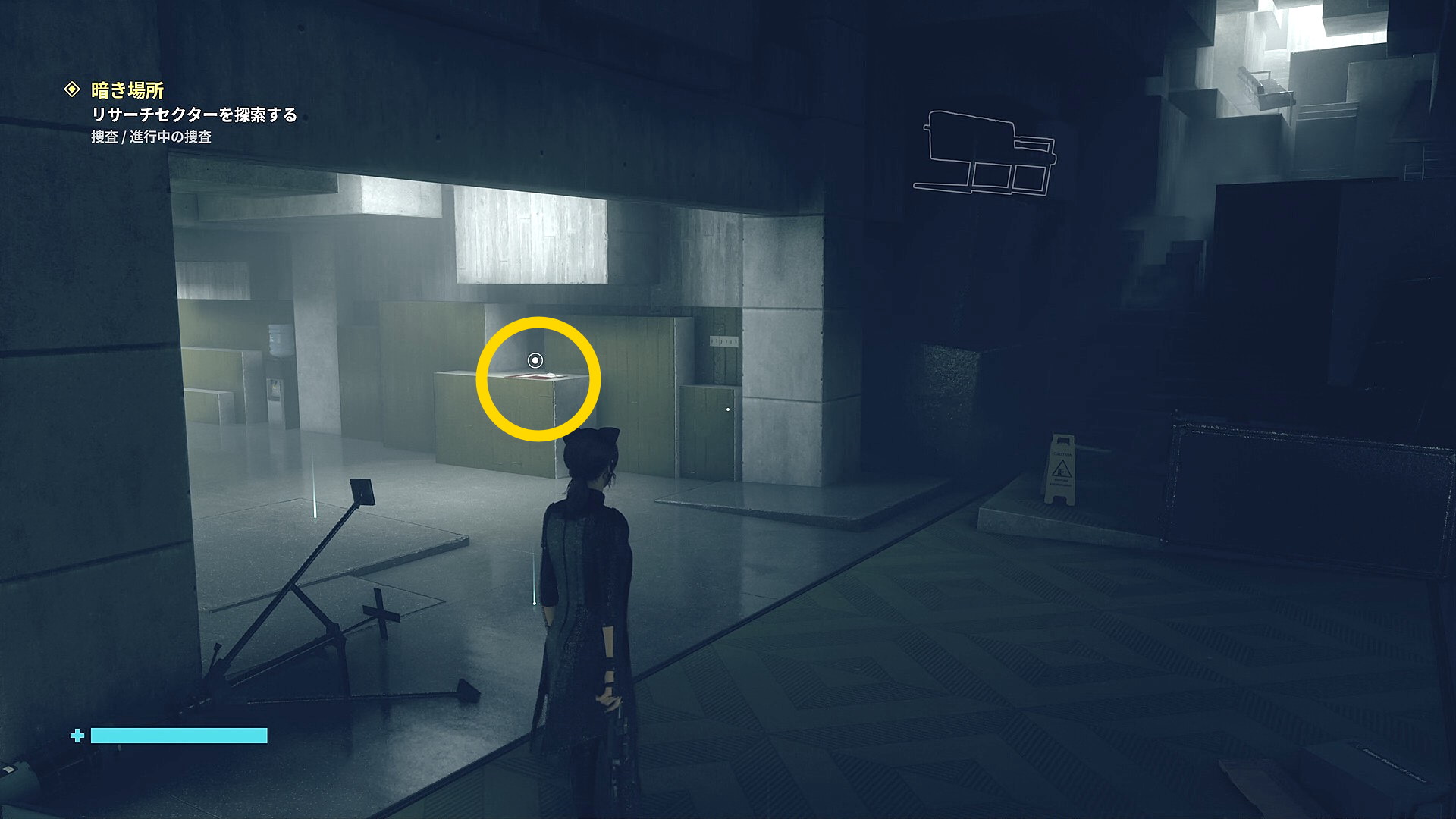 • 道なりに進むとアストラルスパイクがいるので左側の壁を登ってオフィスに入る。入って左のキャビネットに 影になったサンプルの捕獲