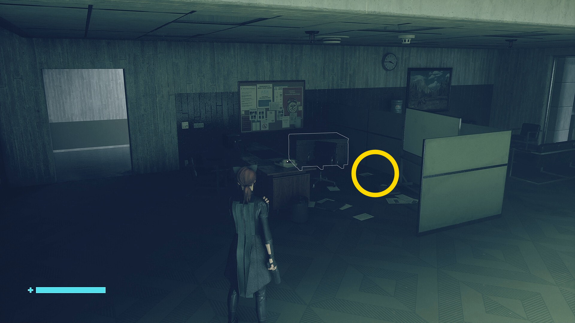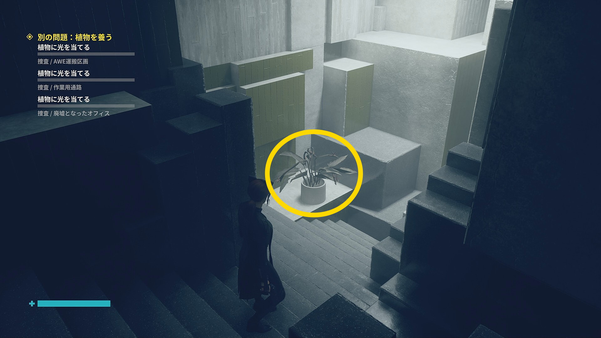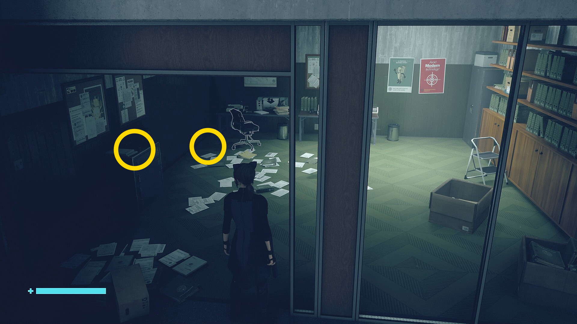 • 道なりに進むとアストラルスパイクがいるので左側の壁を登ってオフィスに入る。入って左のキャビネットに 影になったサンプルの捕獲