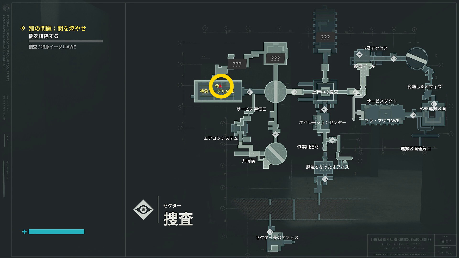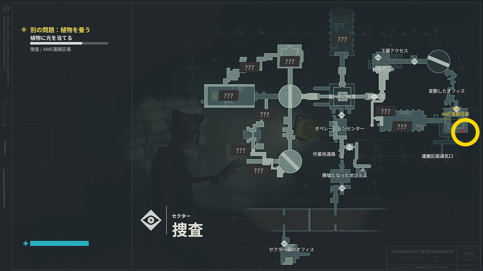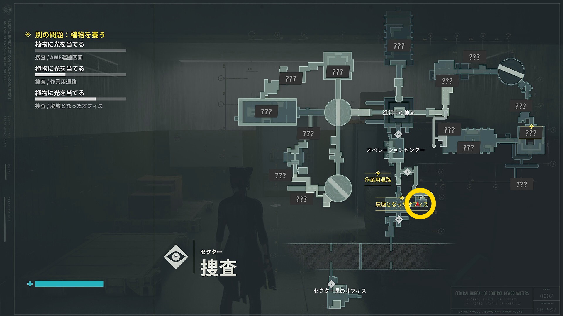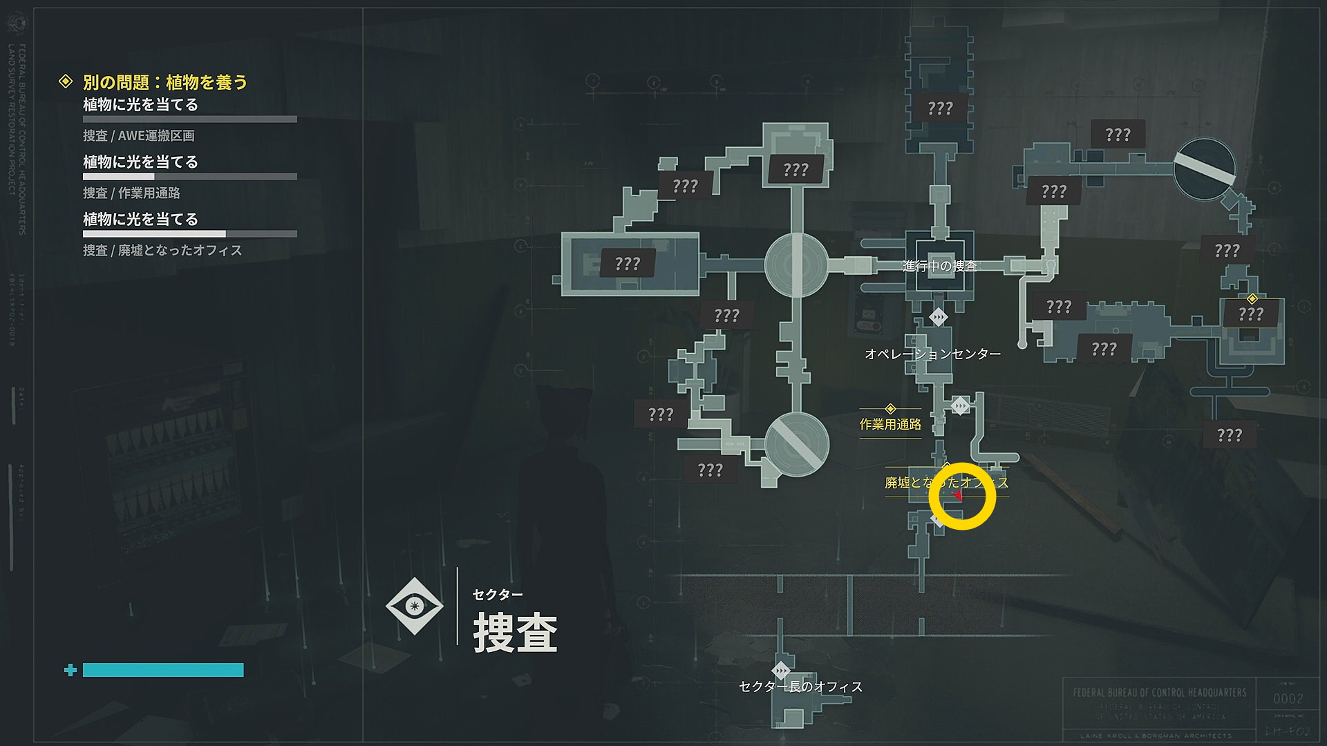 • 正面のドアを開け「進行中の捜査」エリアに戻ったらエレベーターで上階へ