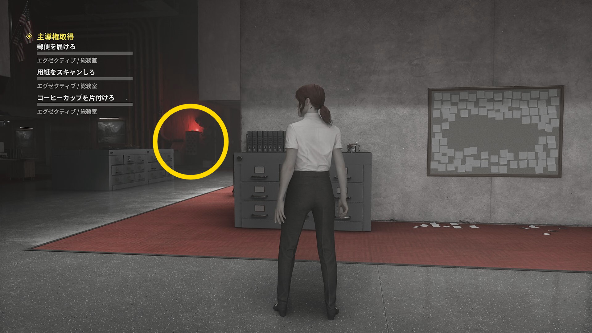 - 端末がすでに赤く光っているので長官の郵便物を回収して長官のオフィスへ向かう