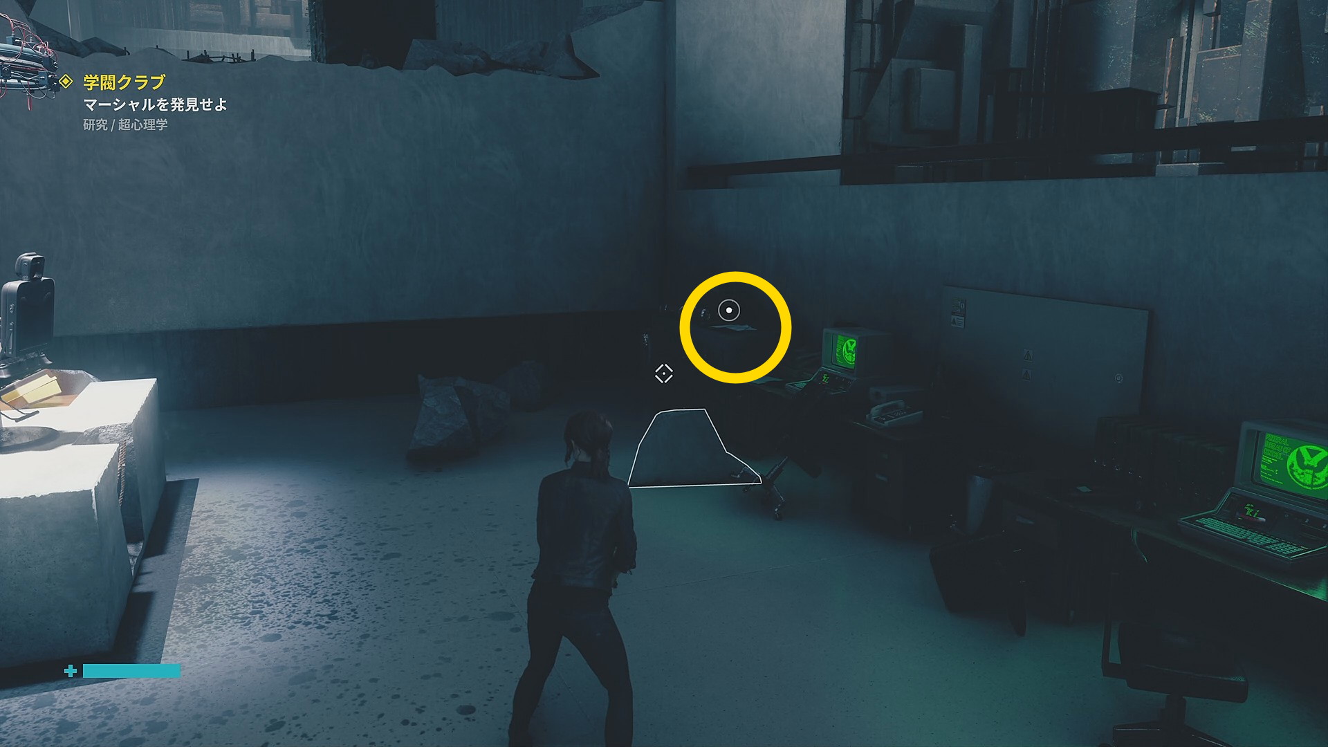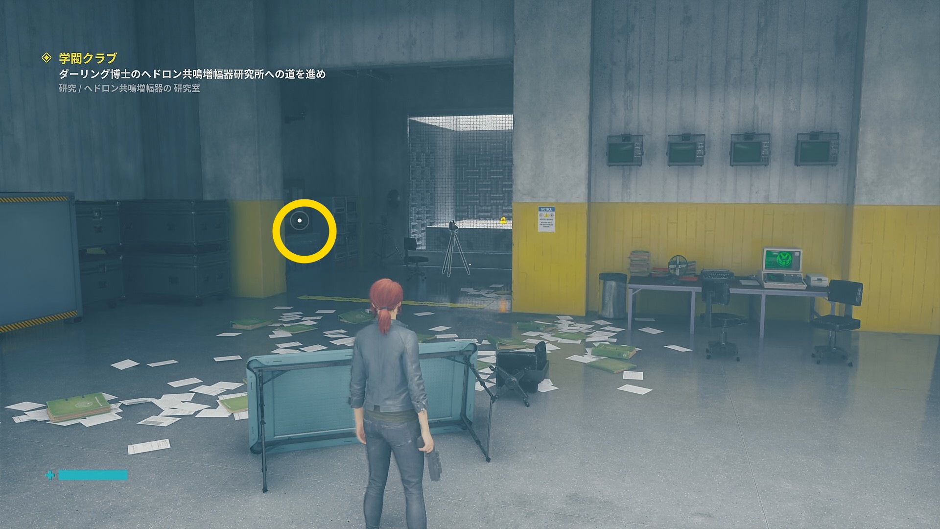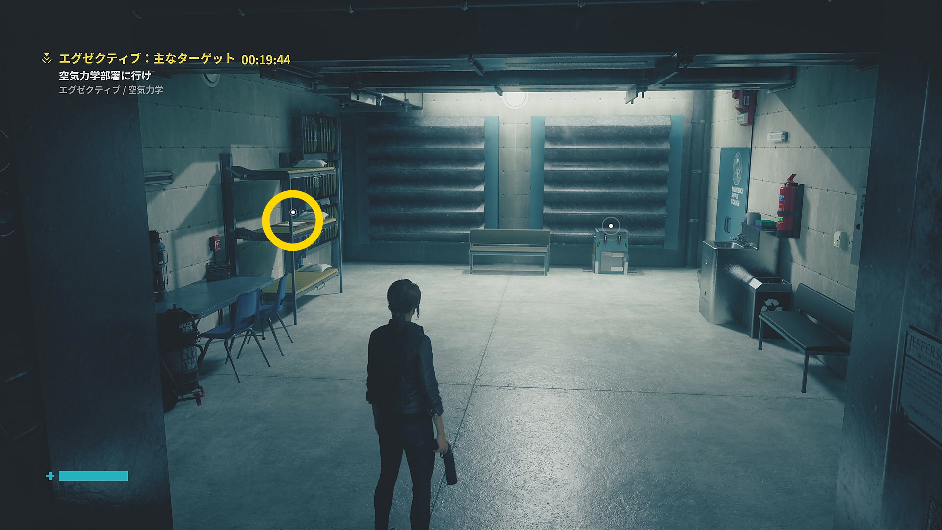 • ファストトラベルしたら右側のドアを抜けて空気力学へ移動 (ミッション2でヒス化したフロッピーディスクを浄化した部屋)