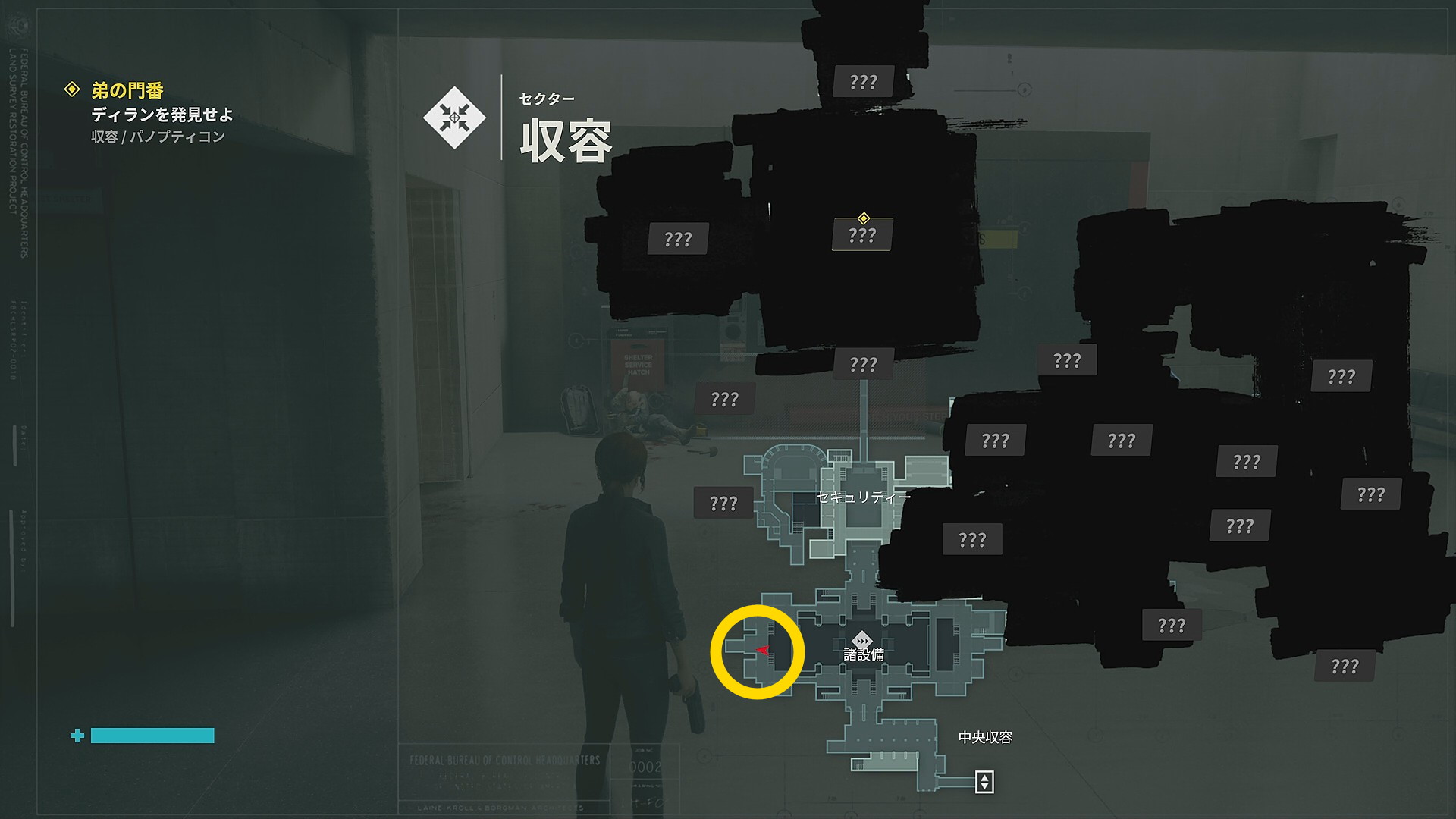 - 諸設備エリアのコントロールポイントに戻ったら、階段を登って北にあるセキュリティーエリアに入る