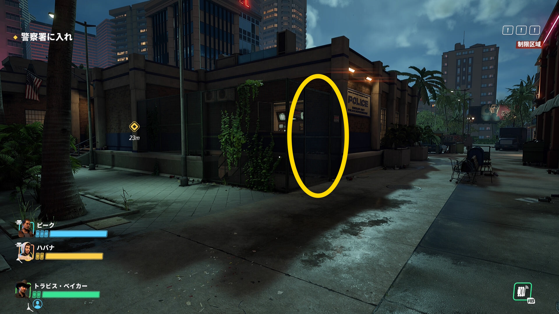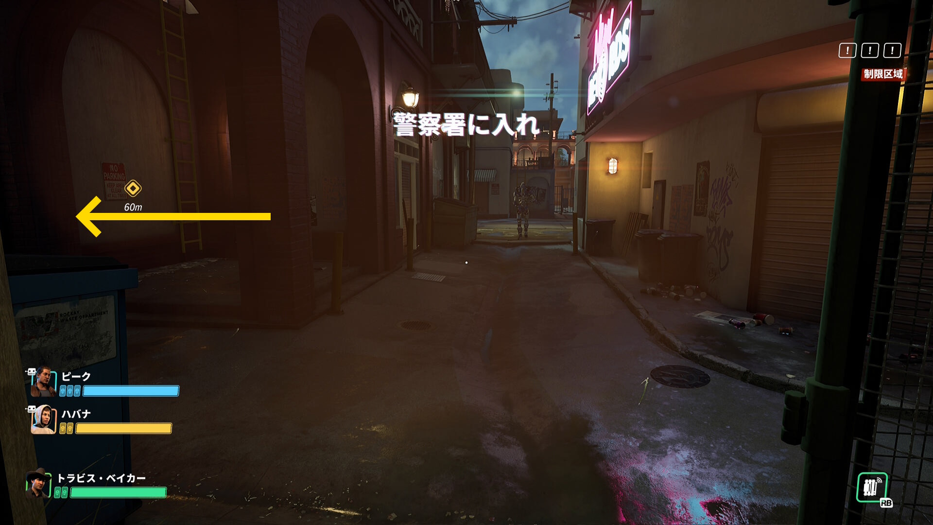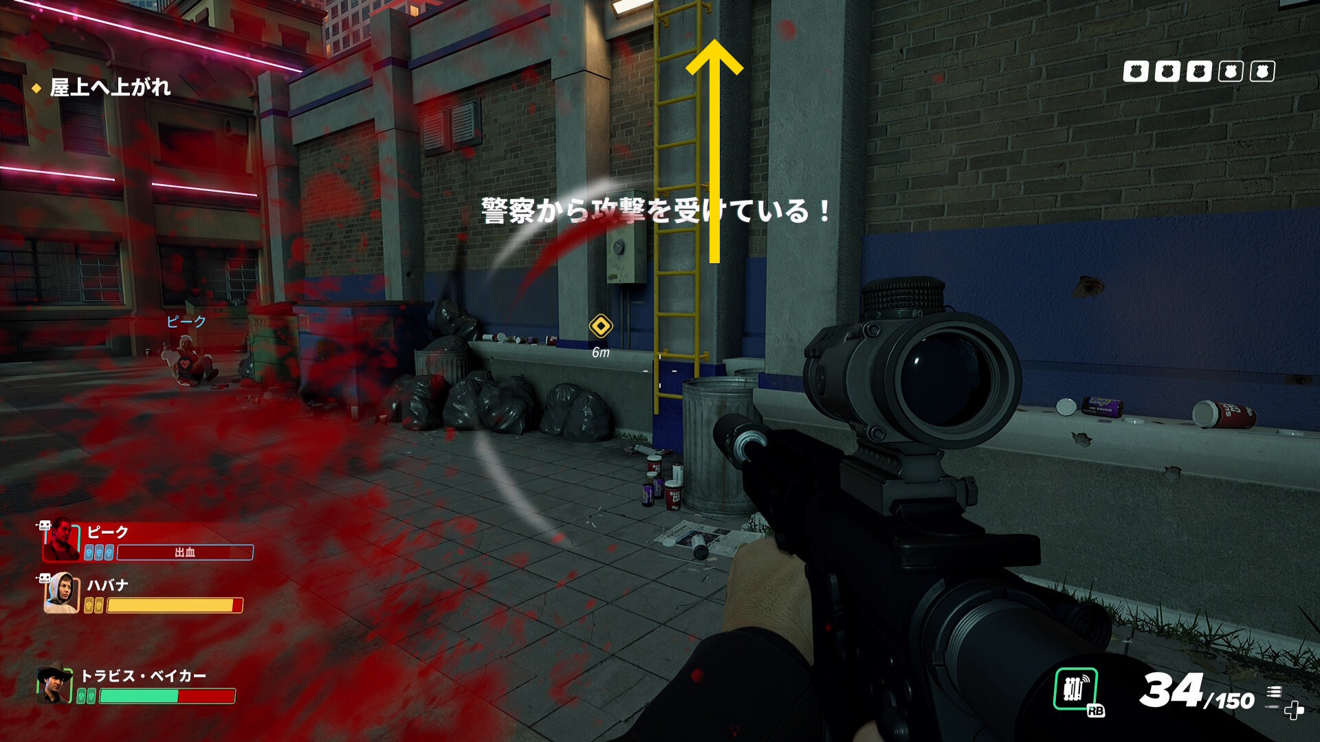 - ここから銃撃戦になる。警察官およびロボット兵を倒しながら署内から出て、マーカーが示す ”外ハシゴ” を目指す