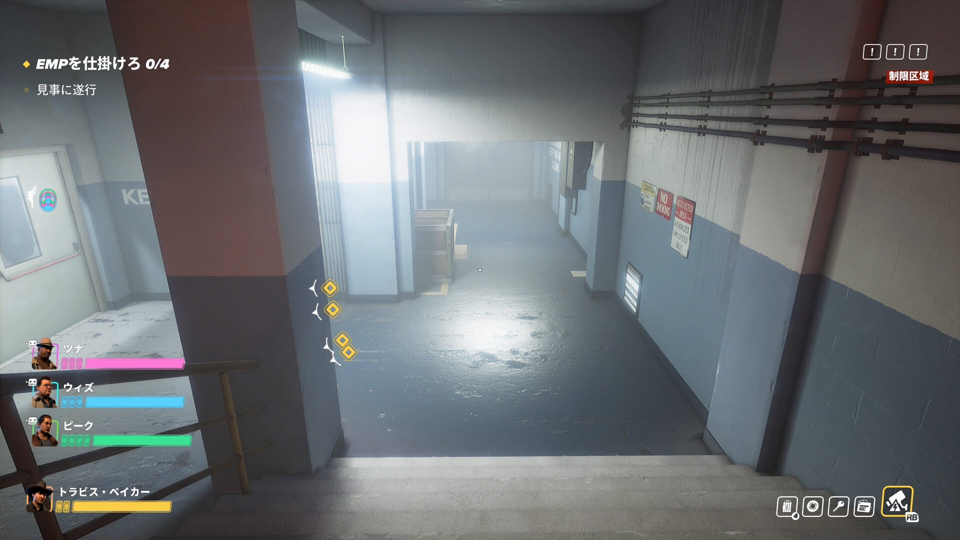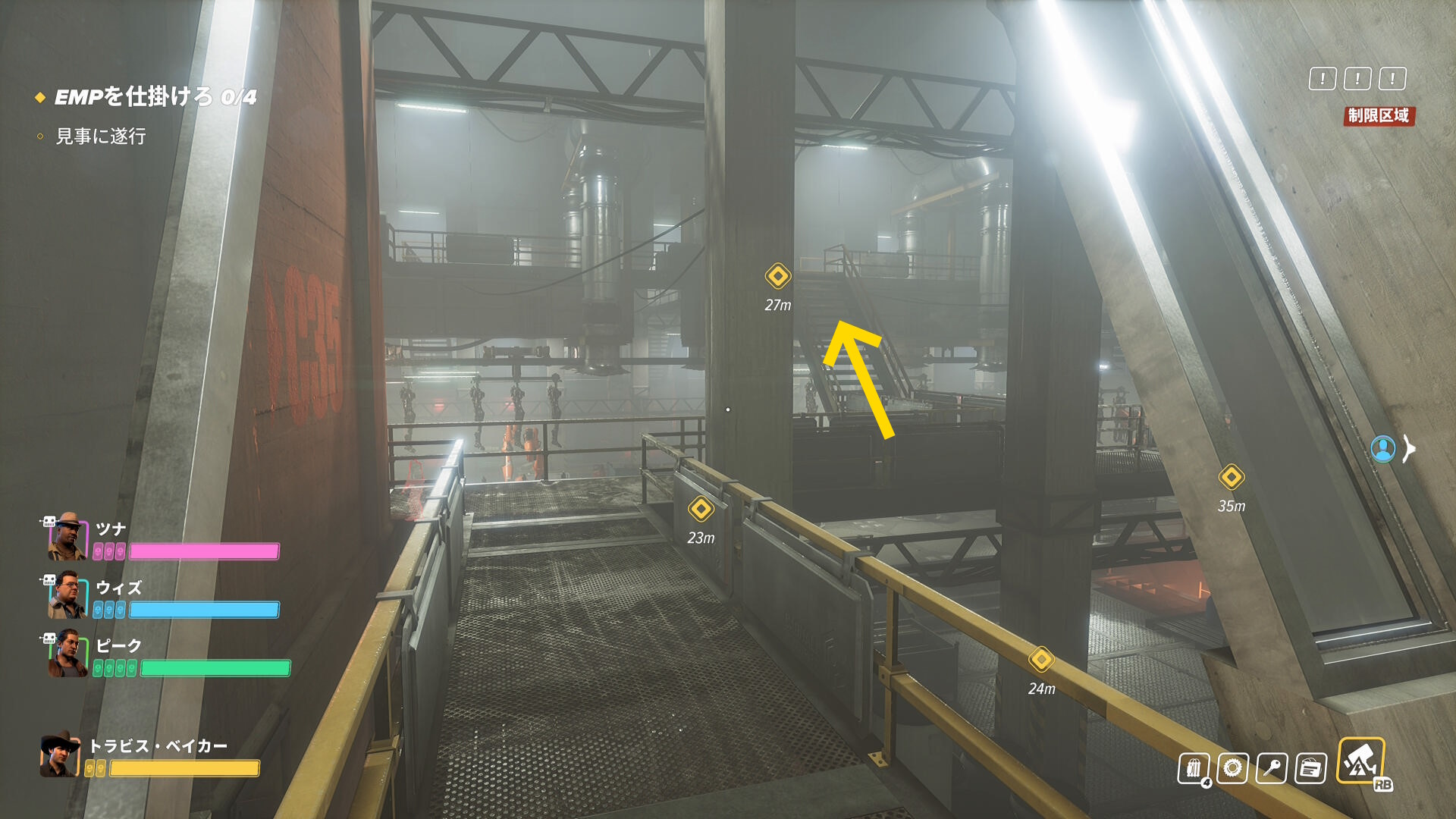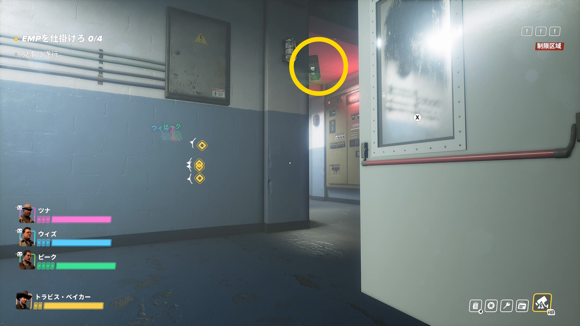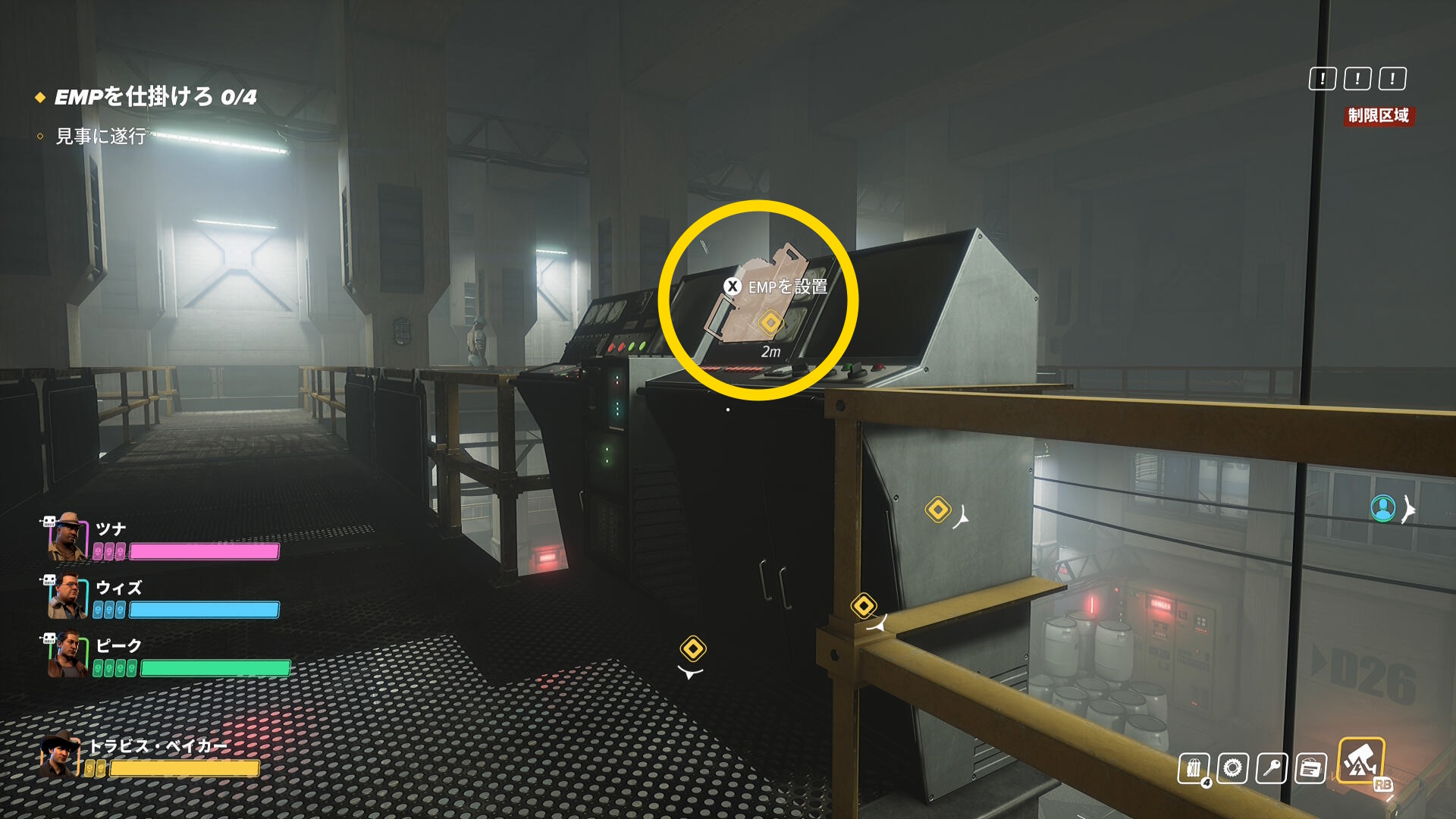 - 階段を登ったところ、右前方の装置に EMP を仕掛ける(1/4)