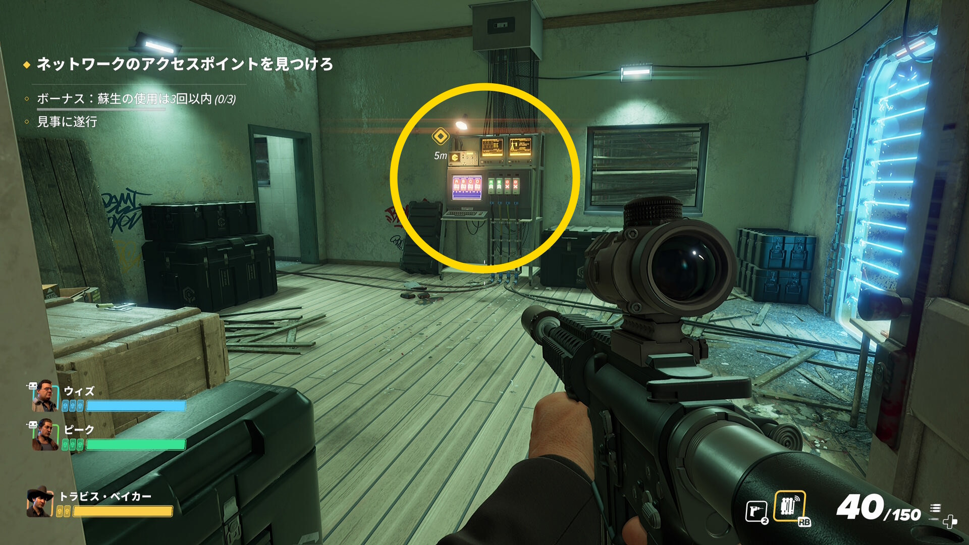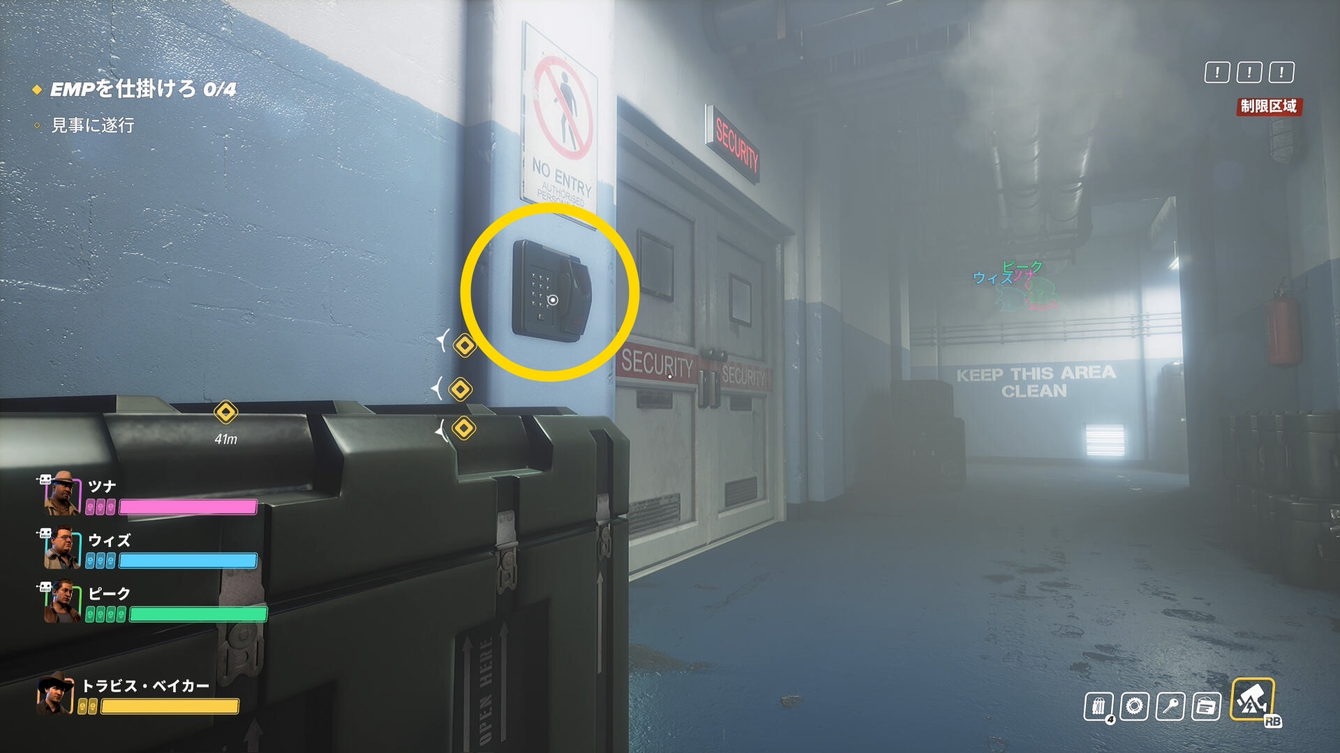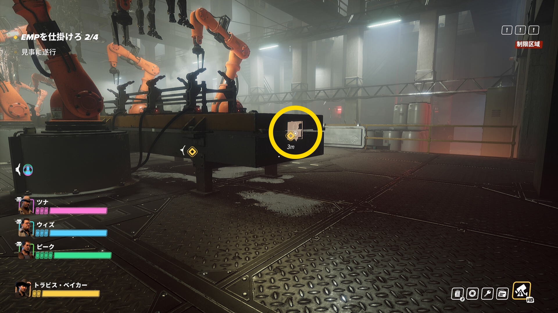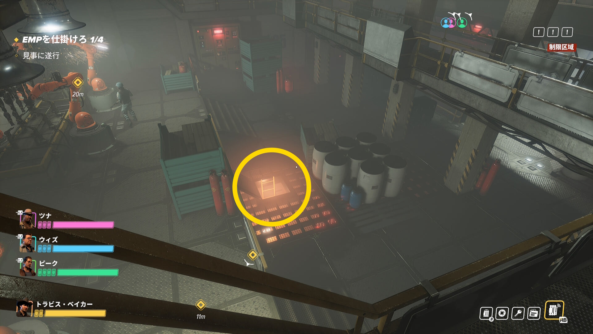 - 階段を登ったところ、右前方の装置に EMP を仕掛ける(1/4)
