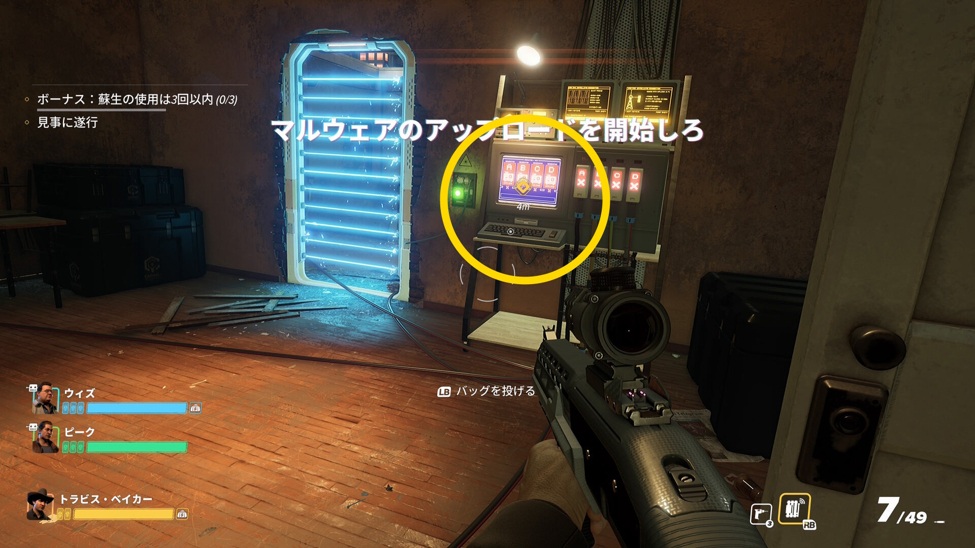 - 中に入り、正面のコンピューターを操作してマルウェアをアップロードする