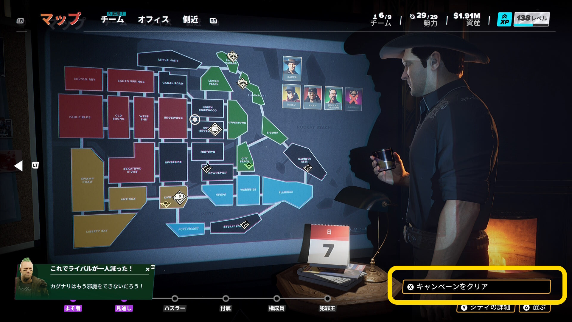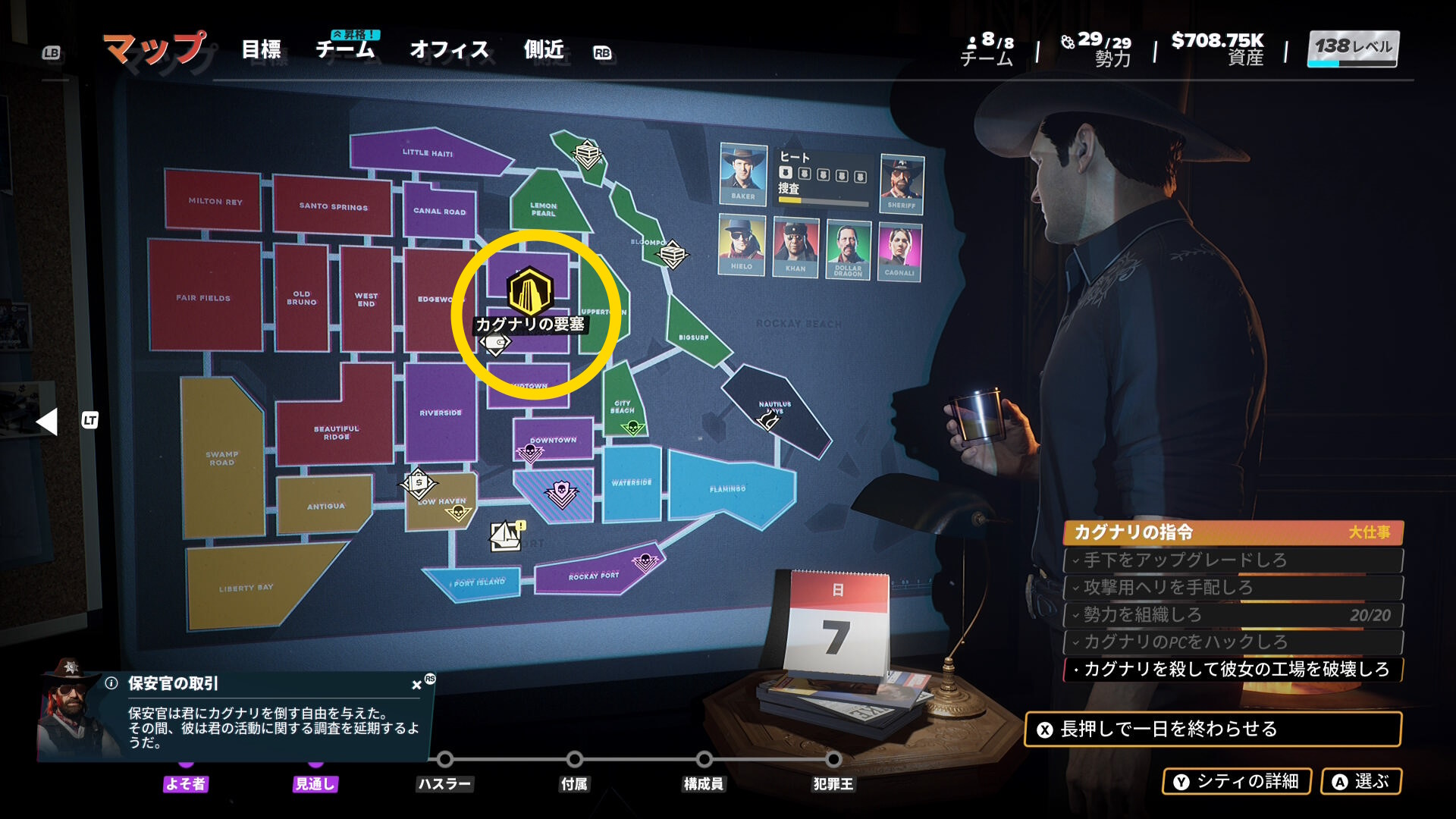 - マップには刑事が出現しているが、気にしなくてオーケー(縄張りが中立になっても構わない)