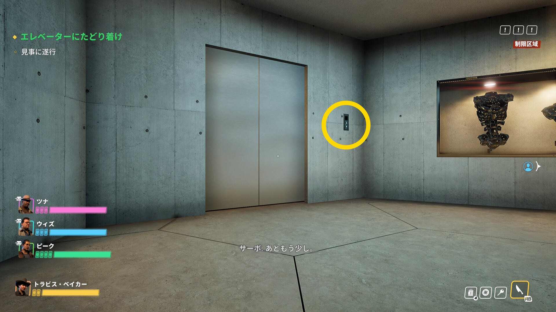 - 最終的にエレベーターに到着するので乗り込む
