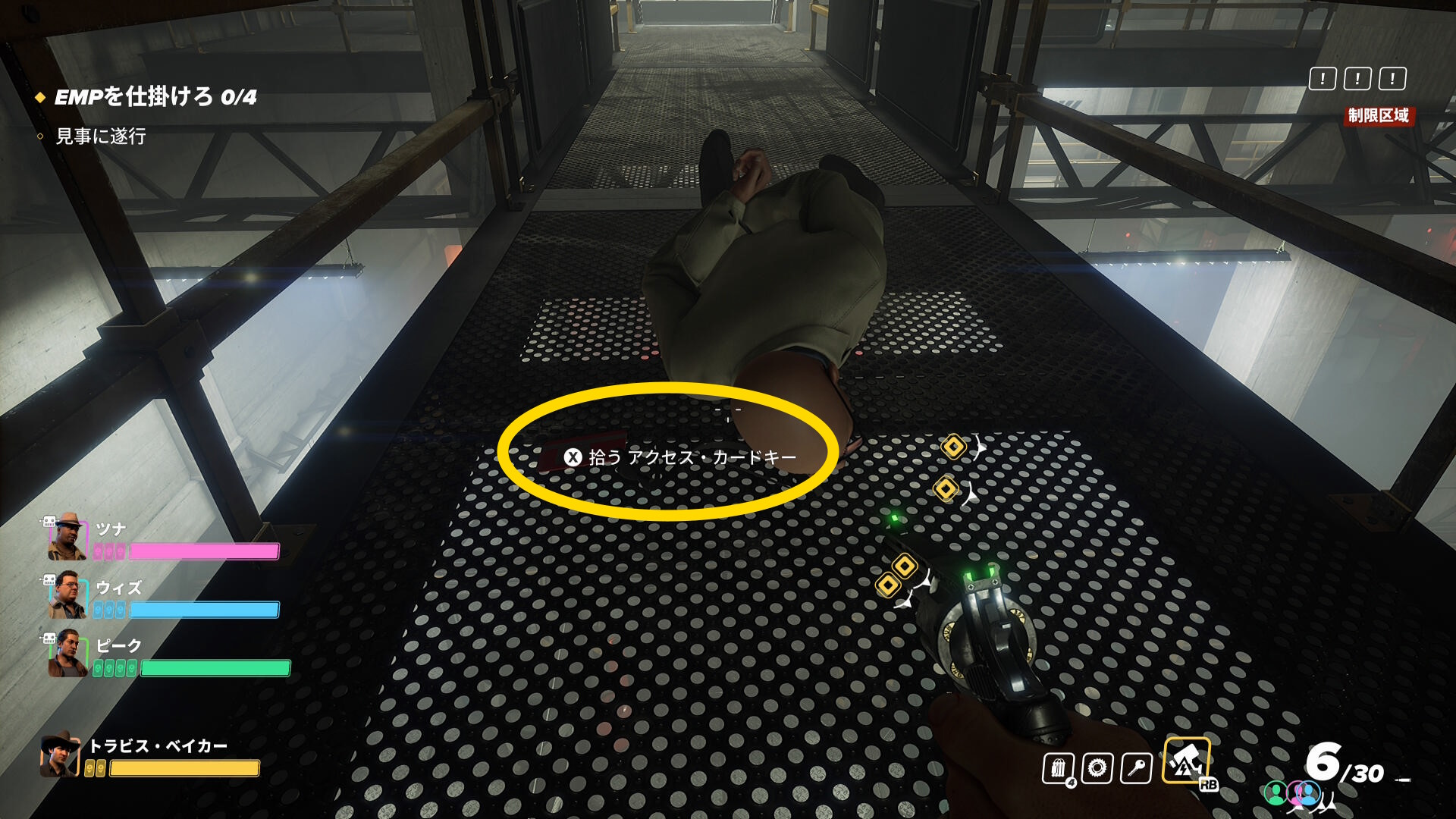 - アクセス・カードキーがない場合、研究員を拘束したときに取りこぼしているので取りに戻ろう