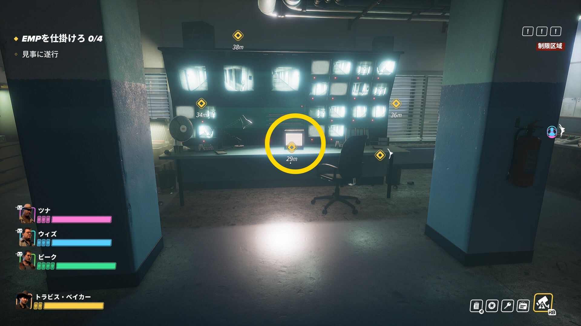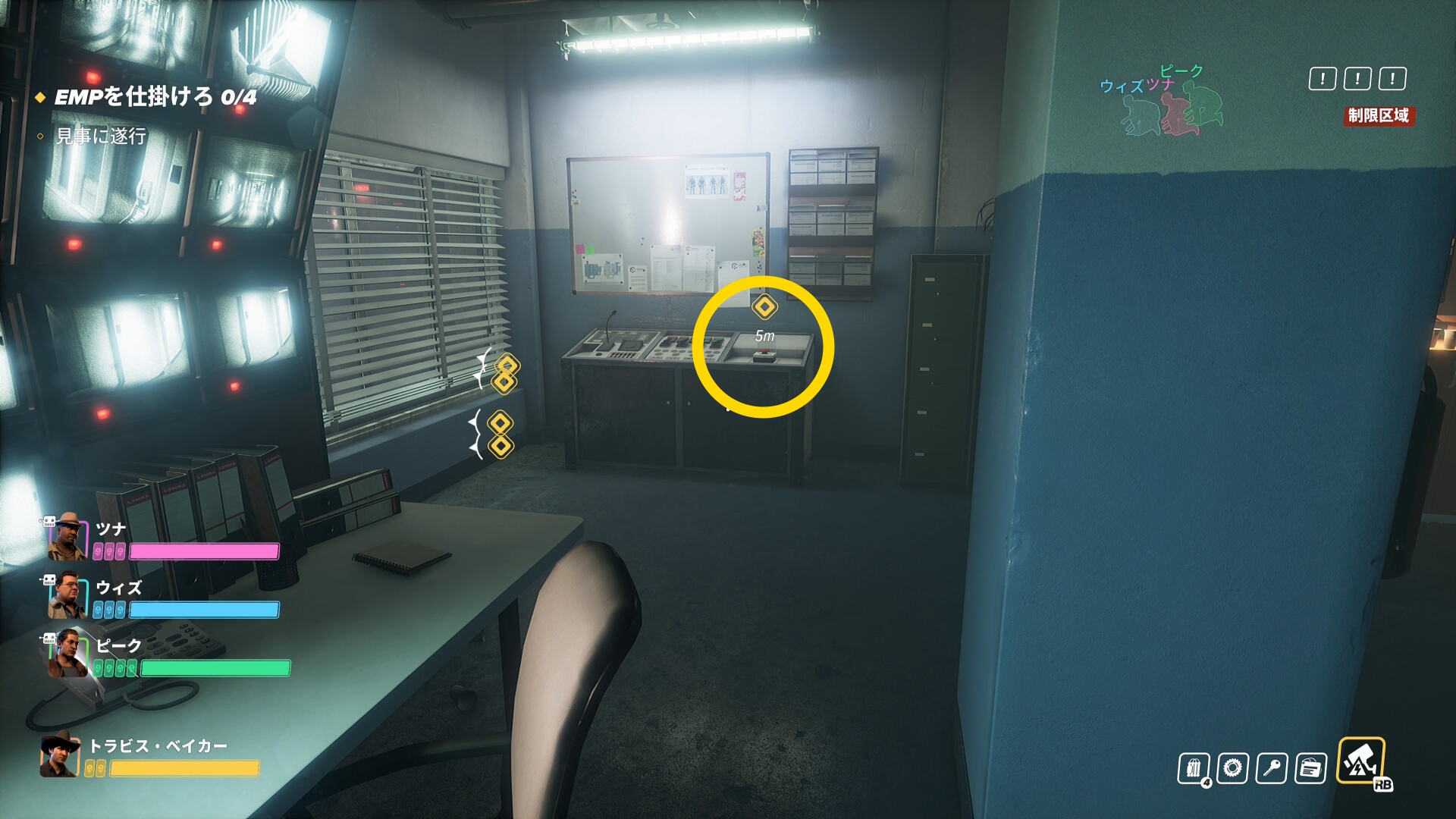 - 4個の EMP を仕掛けるとコントロールルームへ向かうことになる