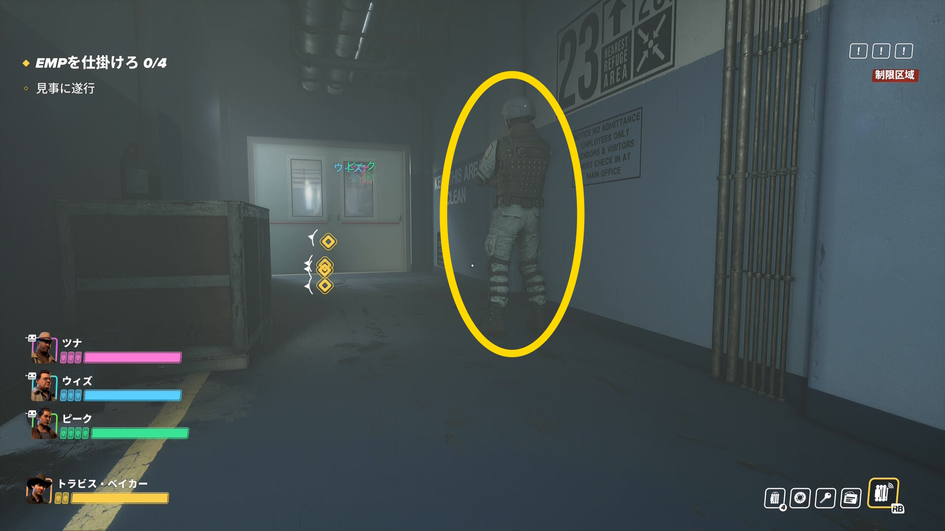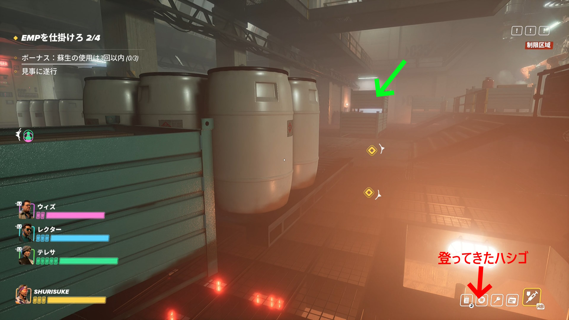 - ピンしたカグナリ兵に見つからぬよう注意しながら EMP を仕掛ける(3,4/4)