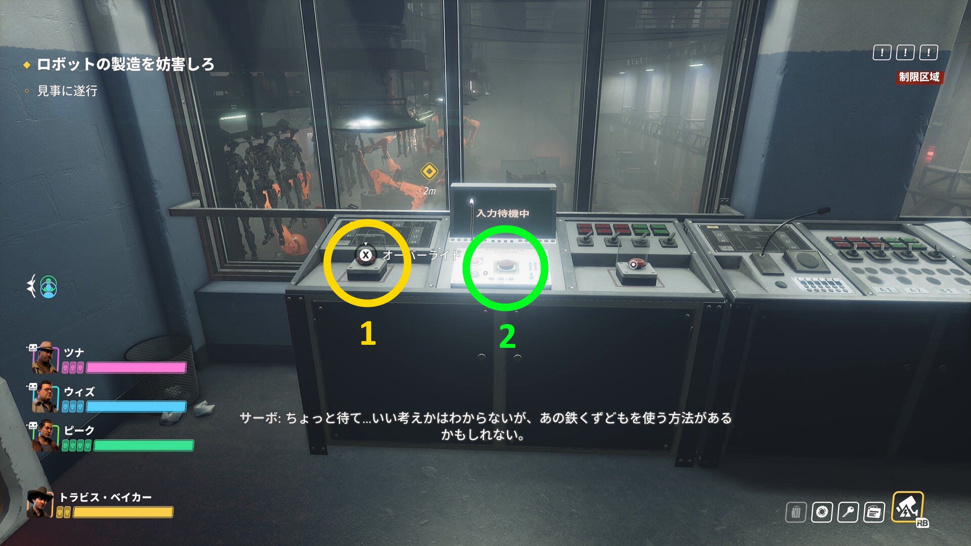 - 右を向くとコントロールルームのドアを解錠するスイッチがあるので押す