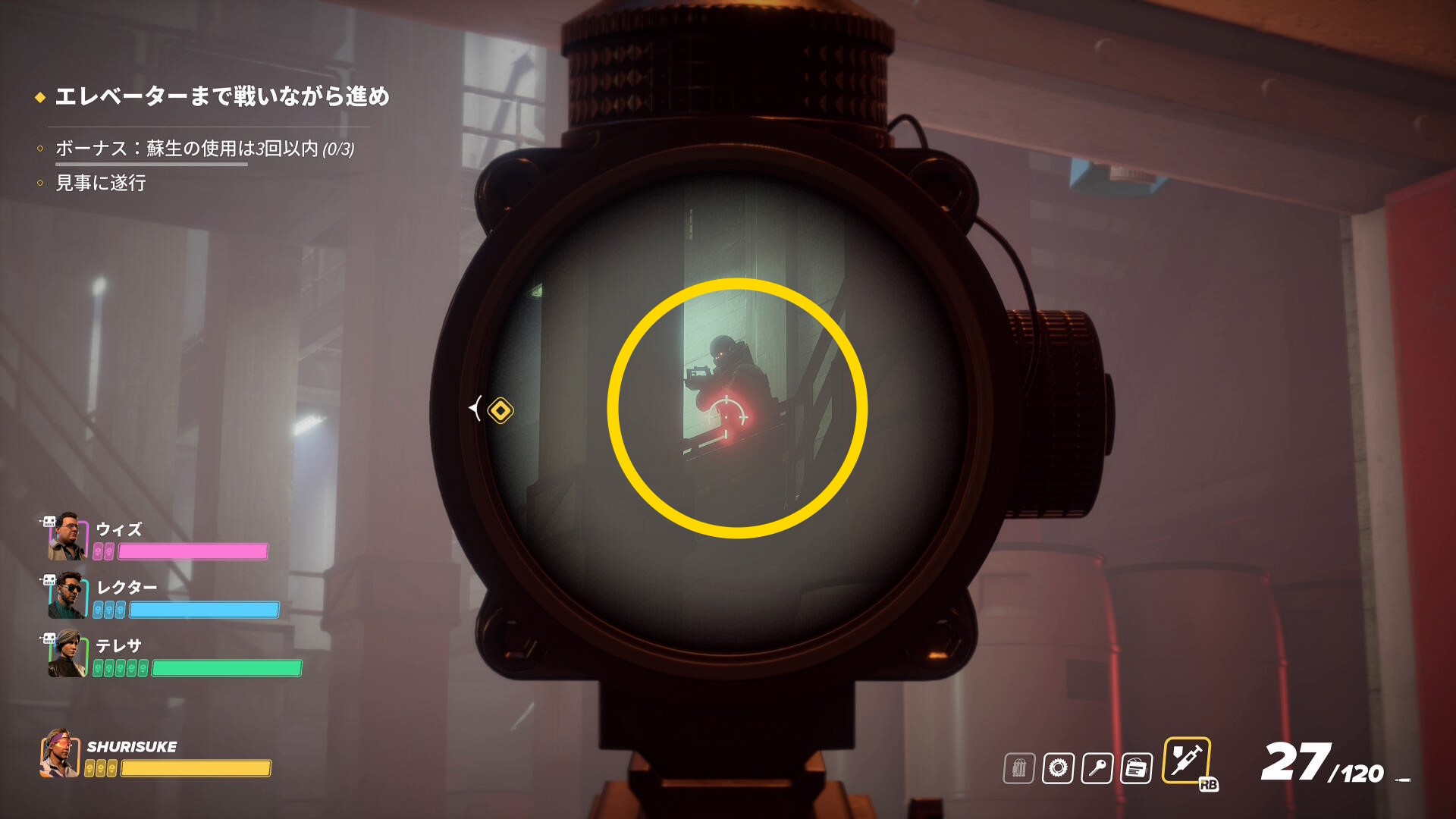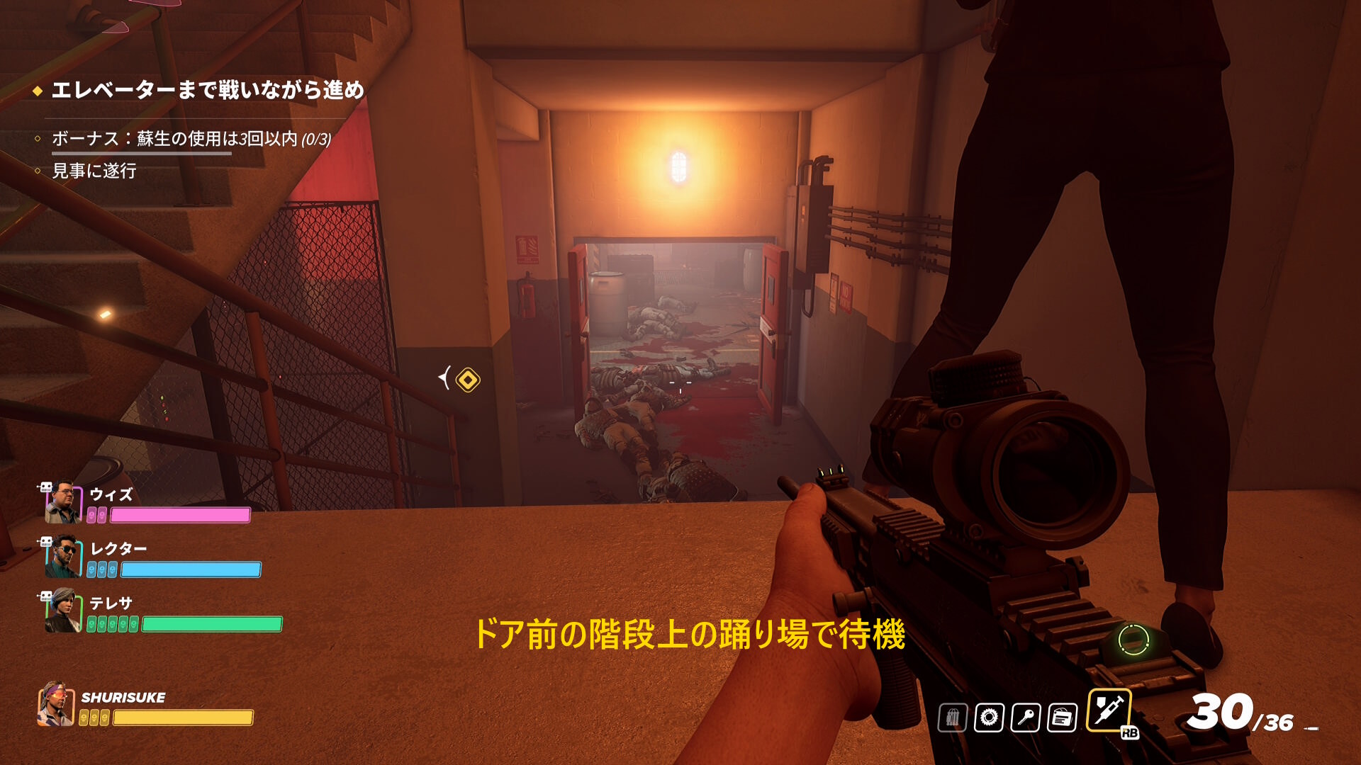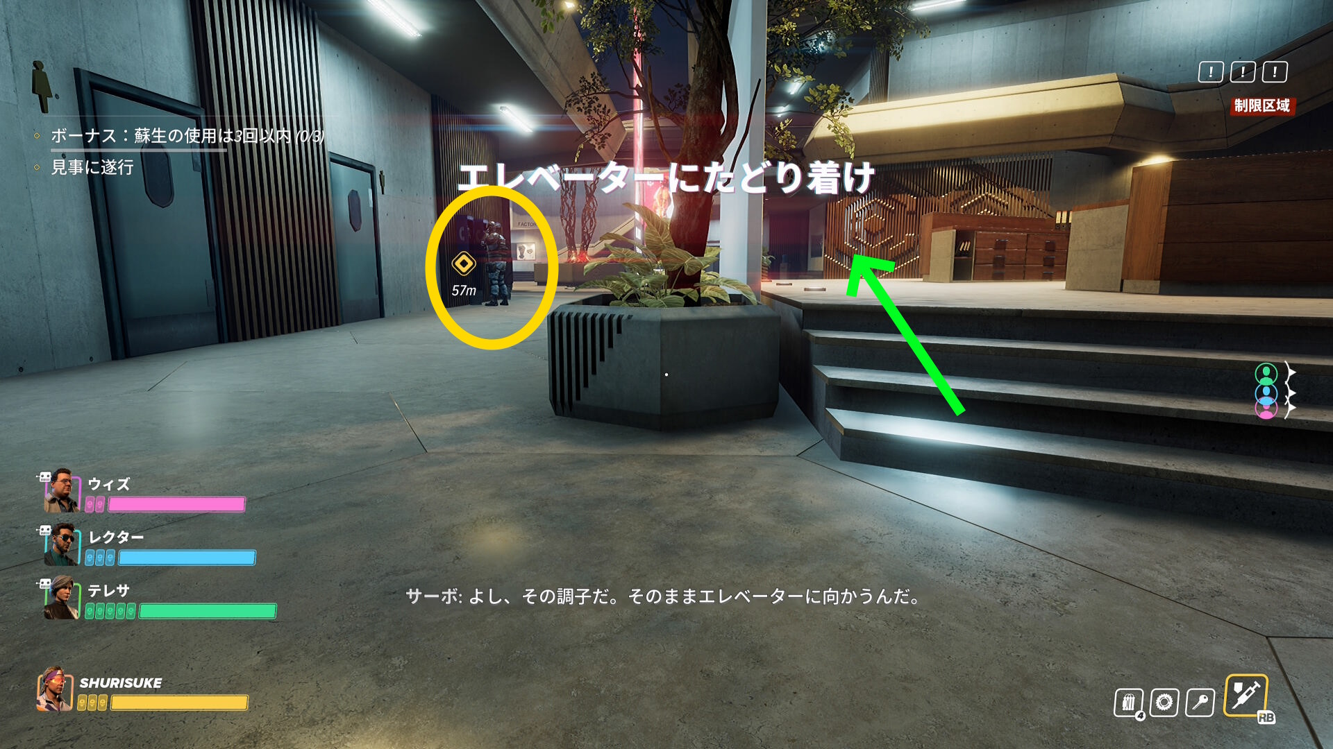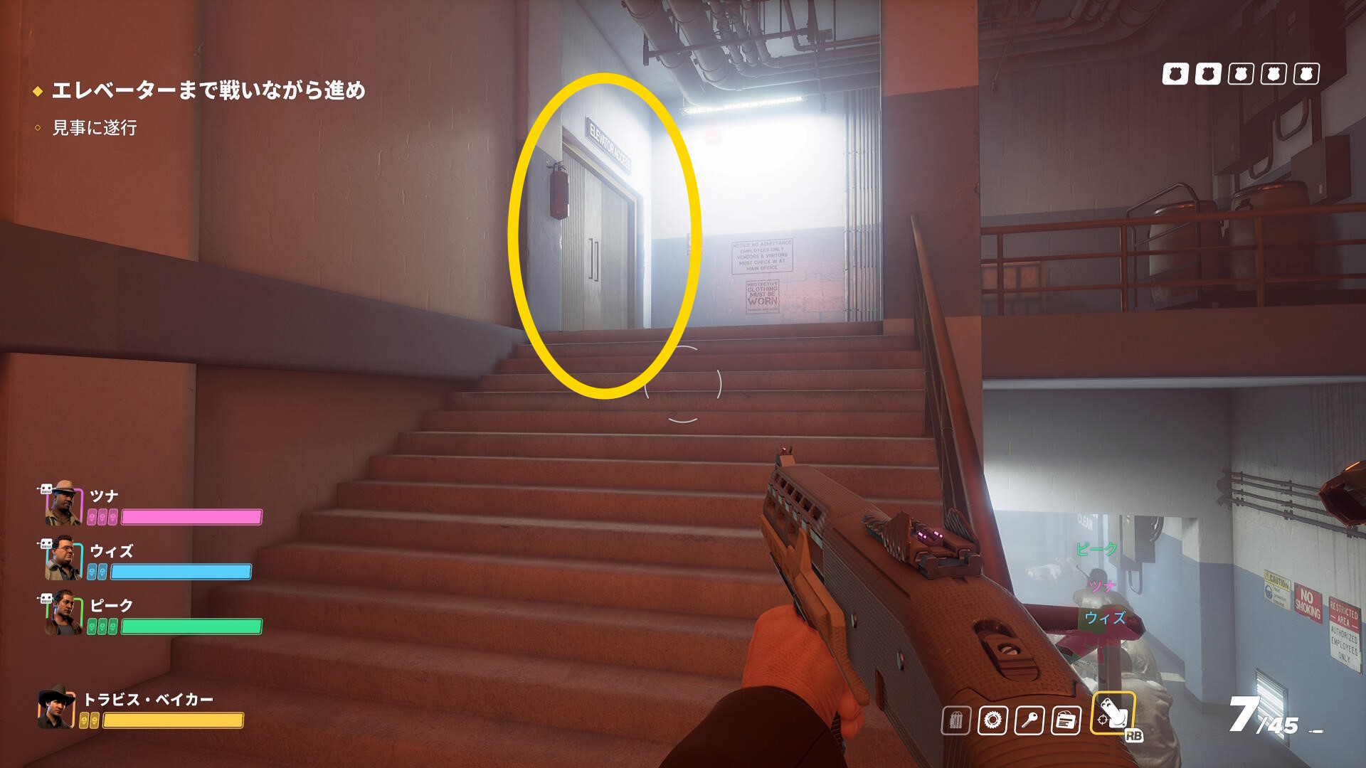 エレベーターまで戦いながら進め