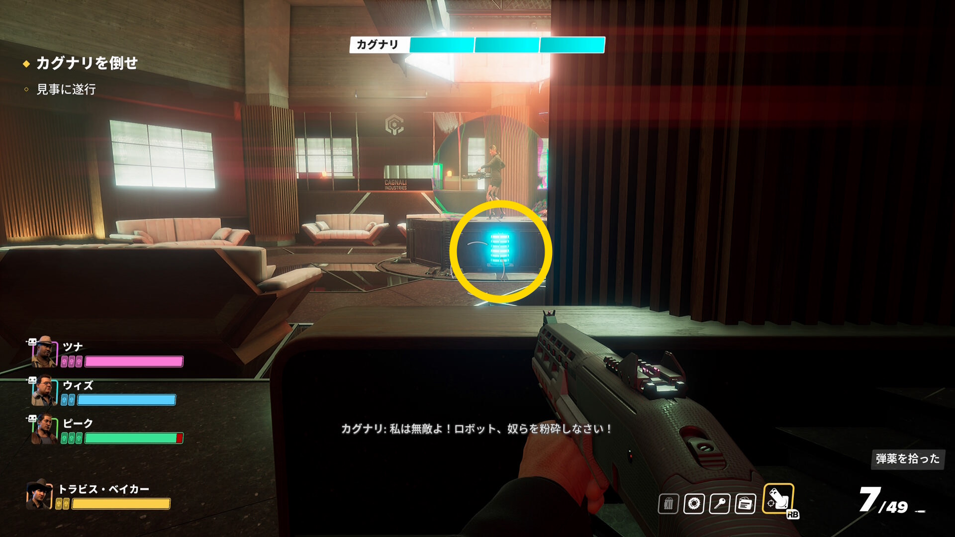 - ドアの前に陣取り、カグナリの反撃に対処していく