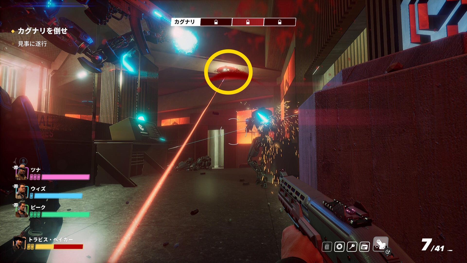 - ドアの外には大量のカグナリ兵が配置されているので、彼らに向かってオートタレットを設置すると少しラクになる