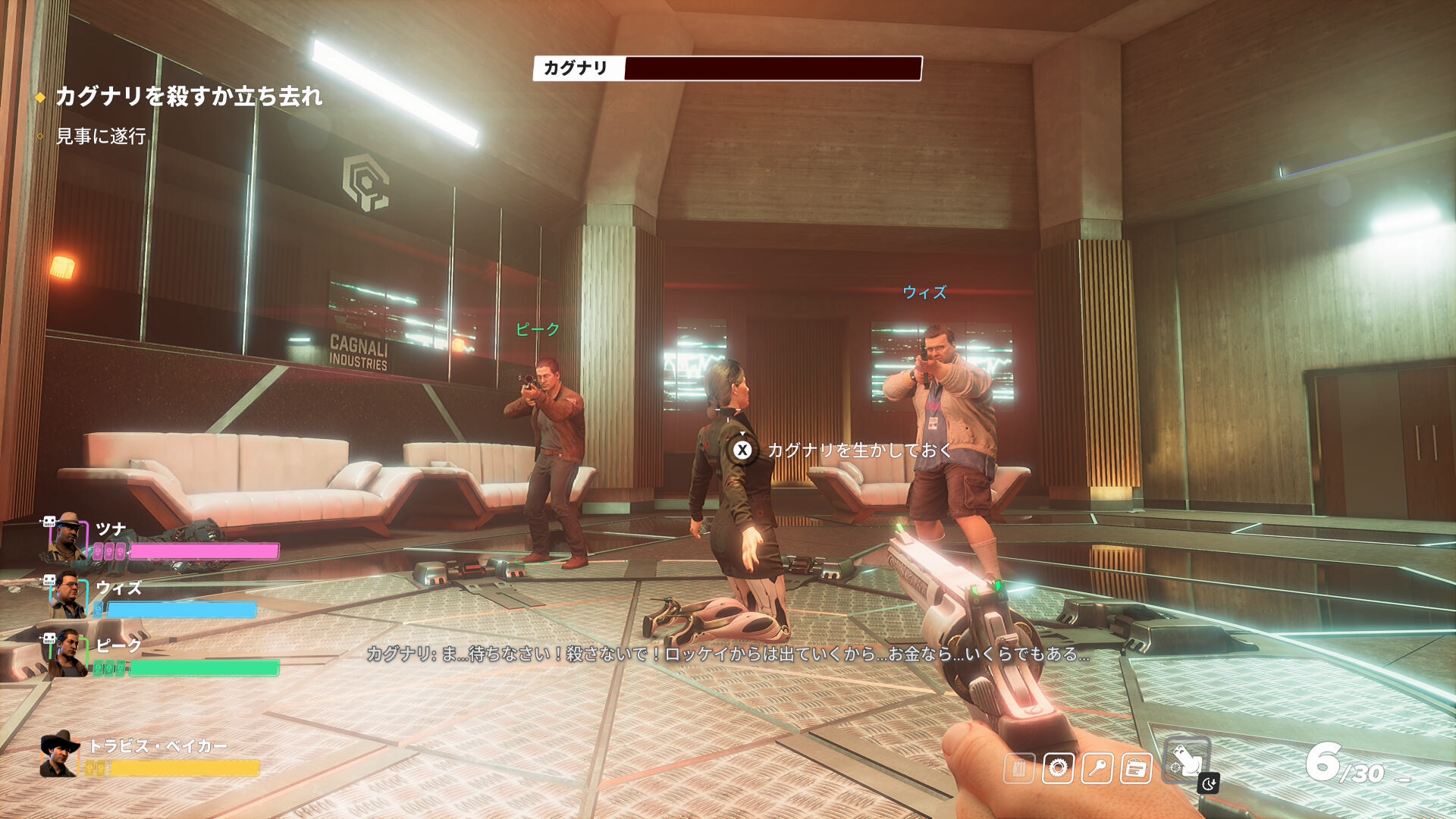 - カグナリの HP をすべて削ると短いカットシーンの後、彼女をどうするかの選択をすることになる