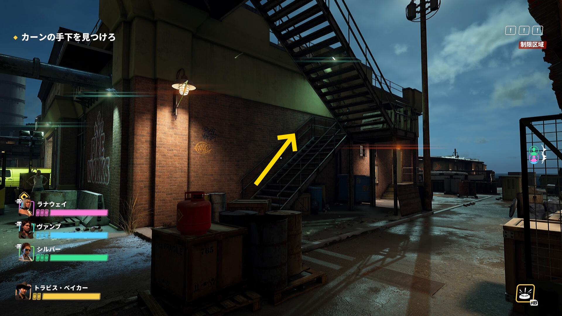 - 倉庫の屋上にあがる
