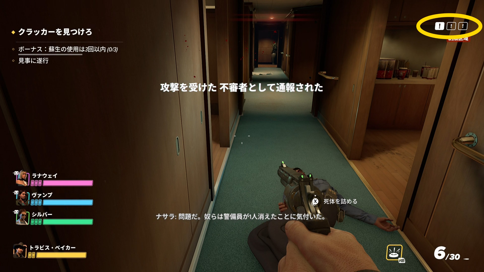 - 2人の警察官をキルして奥に進むと警報が発令される
