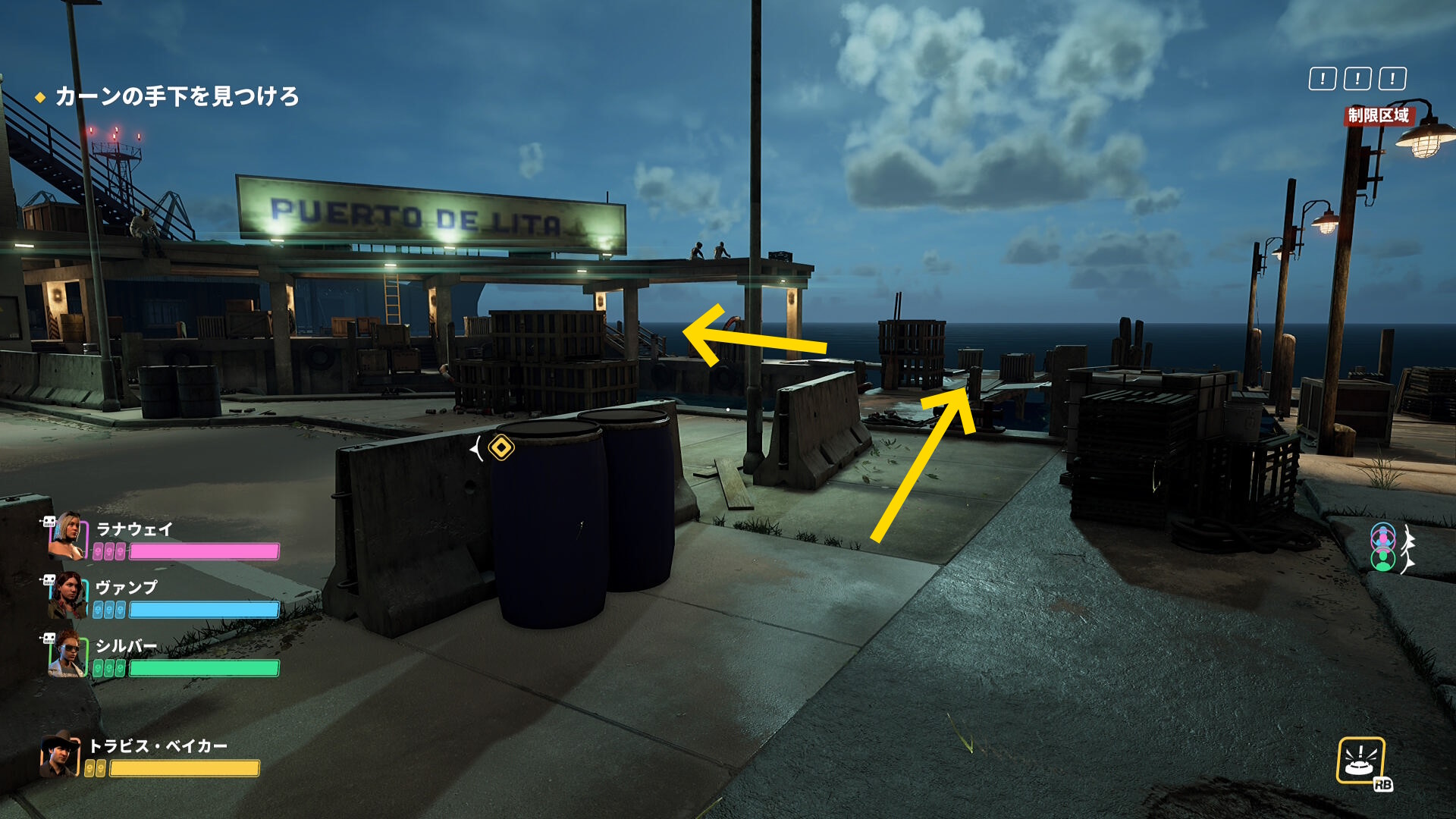 - この桟橋を移動し、PUERTO DE LITA の看板の下の通路を進む