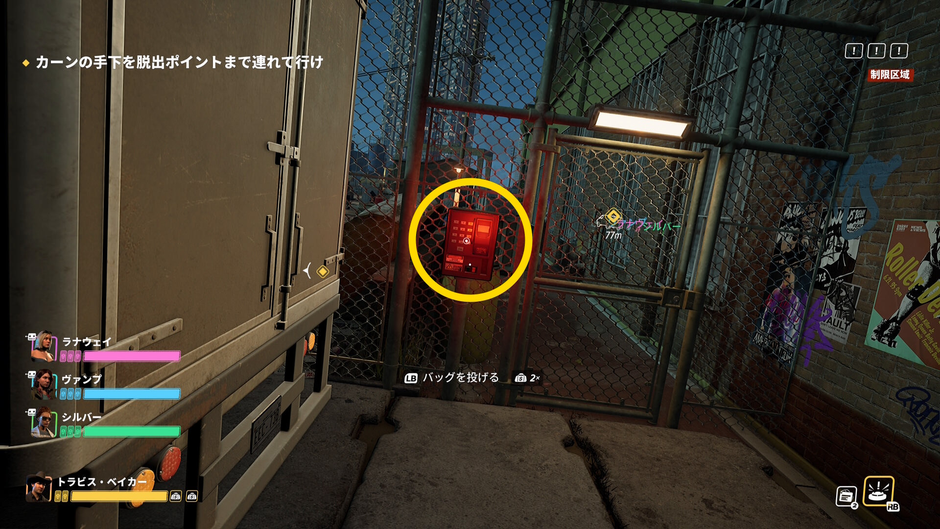 - ダイナーのバックヤードになっており、2人の職員がウロウロしているので拘束(十字パッド左で脅迫すると早い)