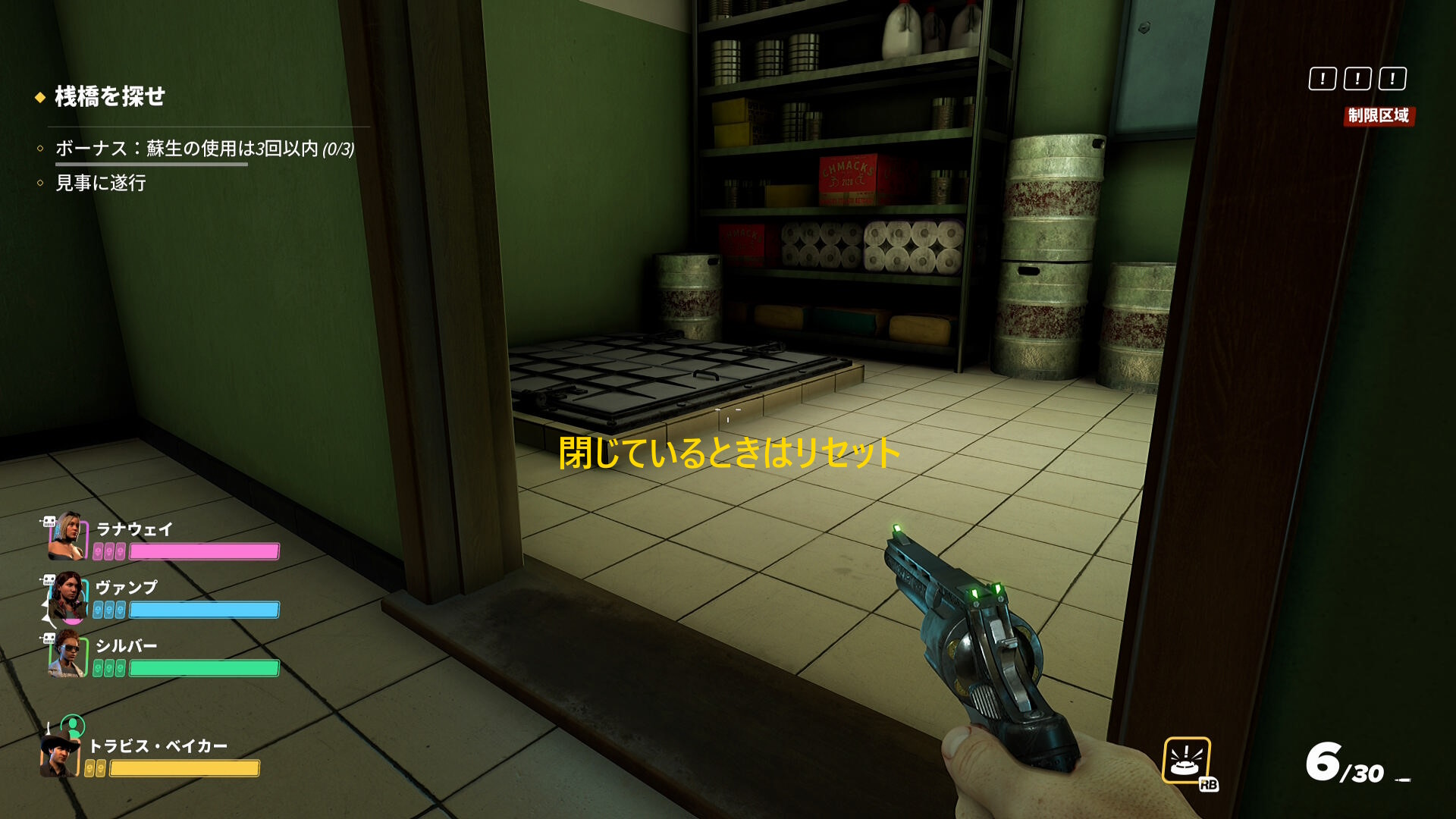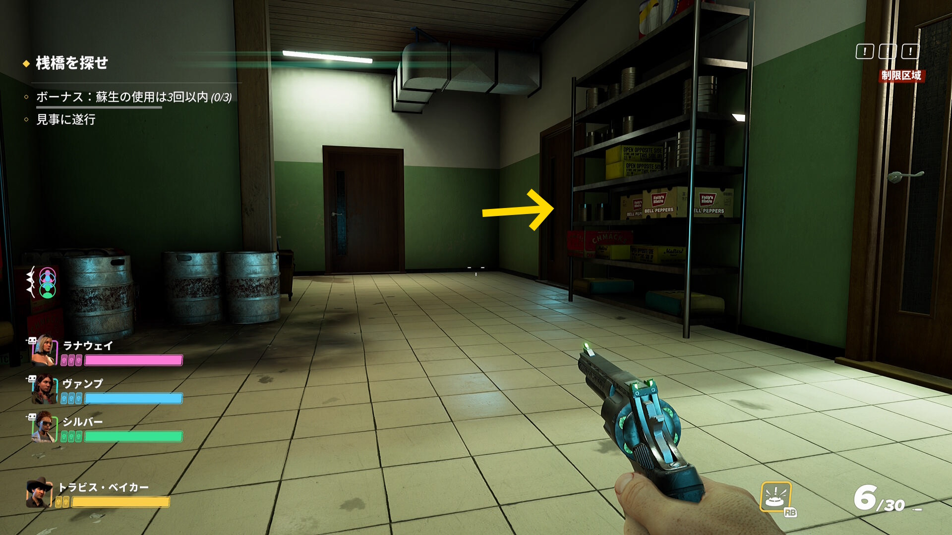 - セキュリティドアを通過後、左のエリアに敵が複数いる