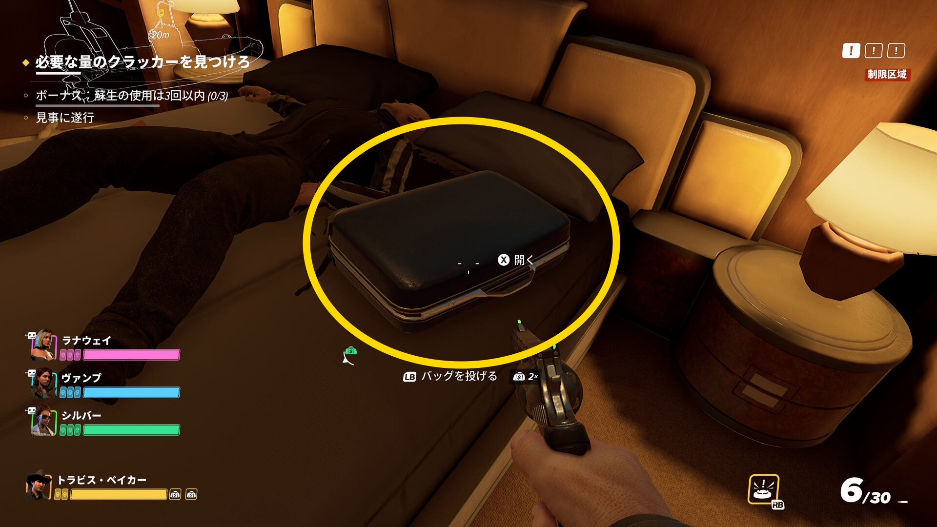 - 敵は撲殺し、死体袋に詰めてハシゴのほうに運ぶと見つからない