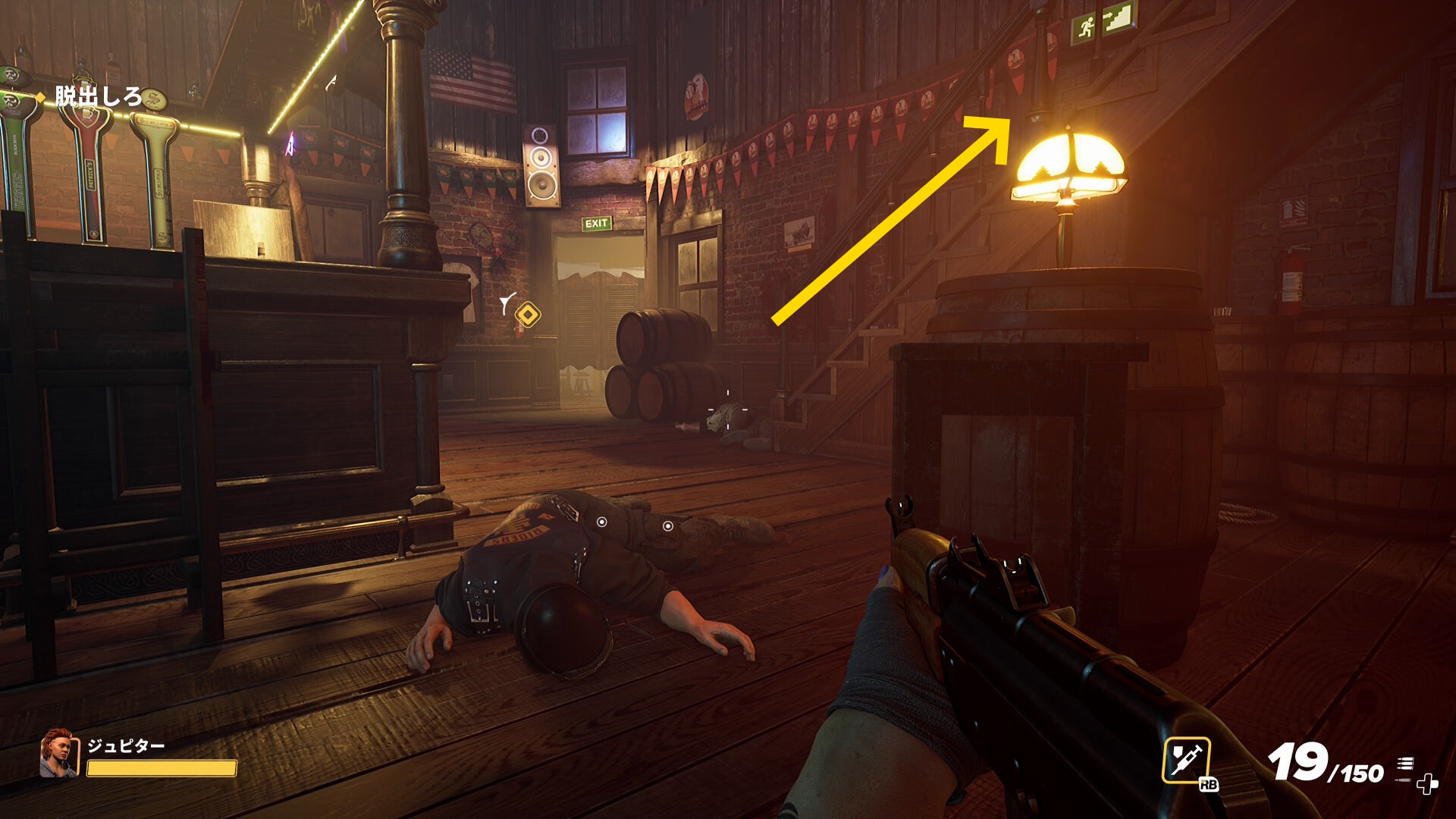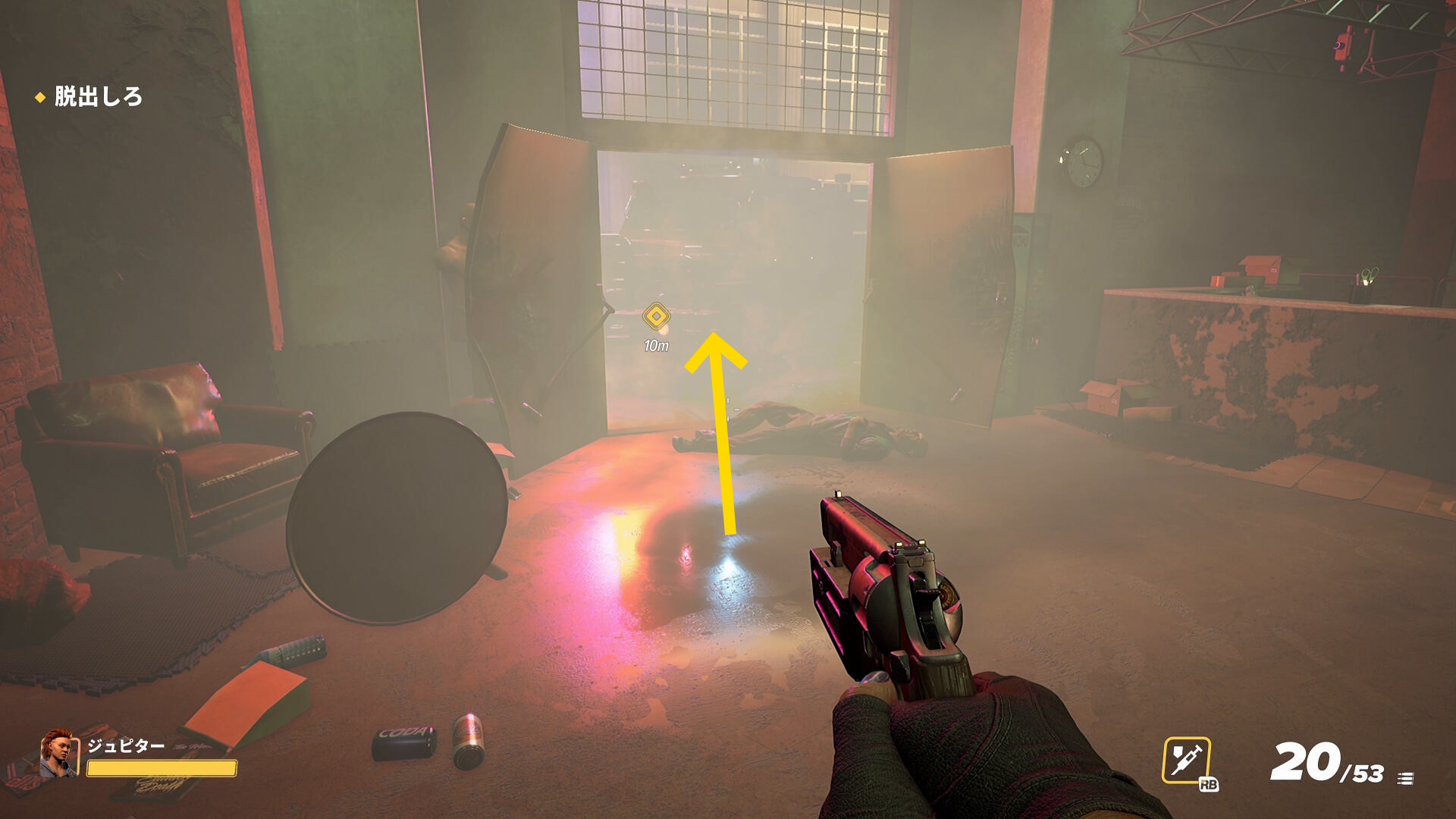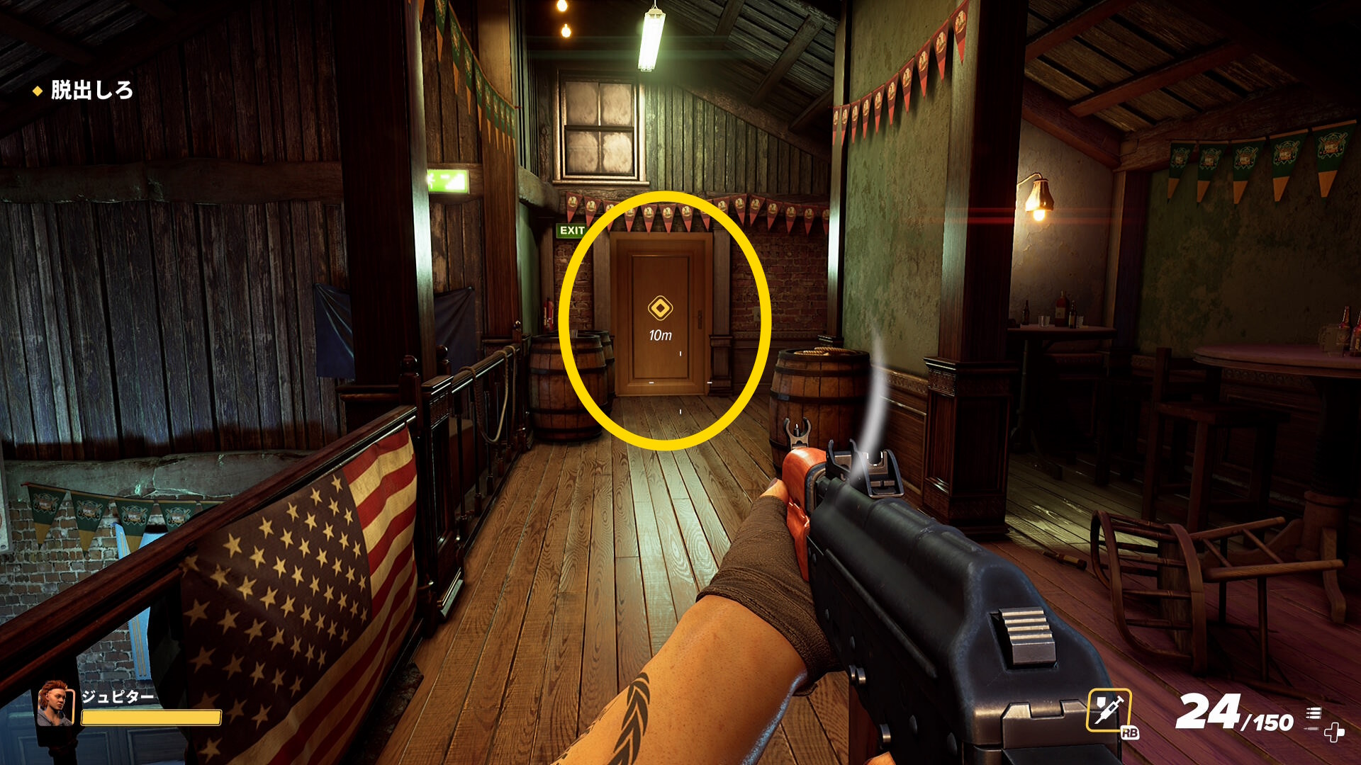 - 部屋を出て、マーカーが表示された脱出地点へ