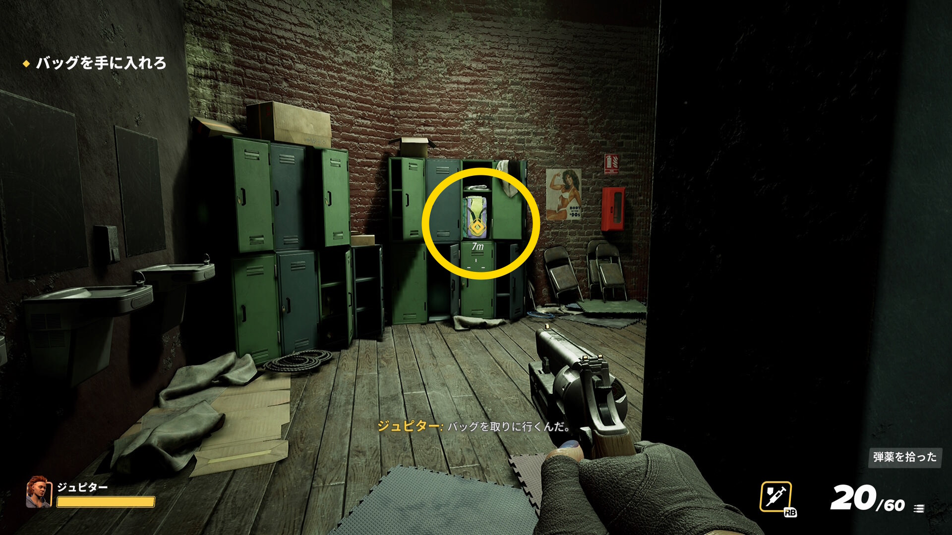 - 階段を下りてジムの1階におり、マーカーが表示されているロッカーへ
