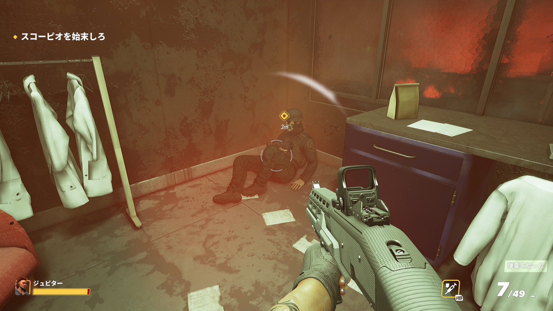 - ジムのドアが爆発するシーンを観たあと、目の前に3人の SWAT がいるのでキル