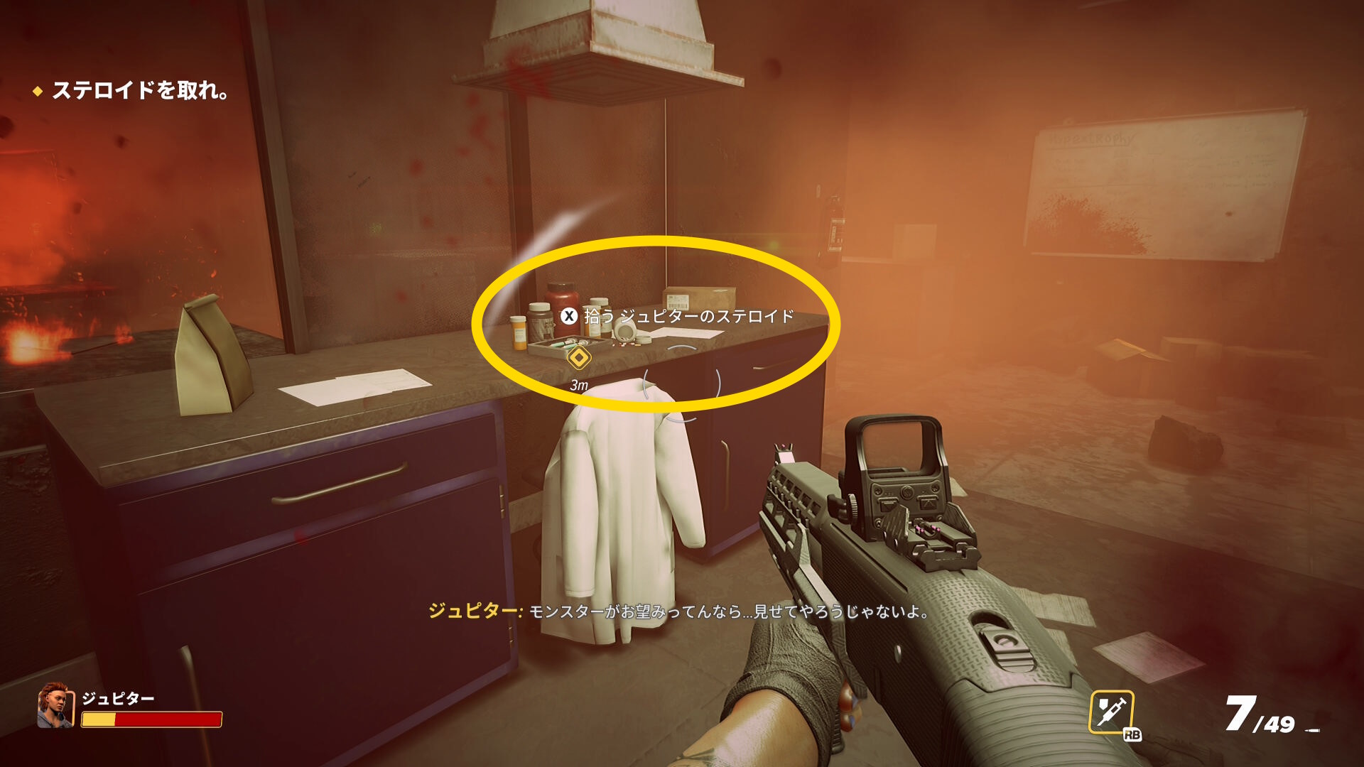 - 近くのデスクにステロイドが置いてあるので回収