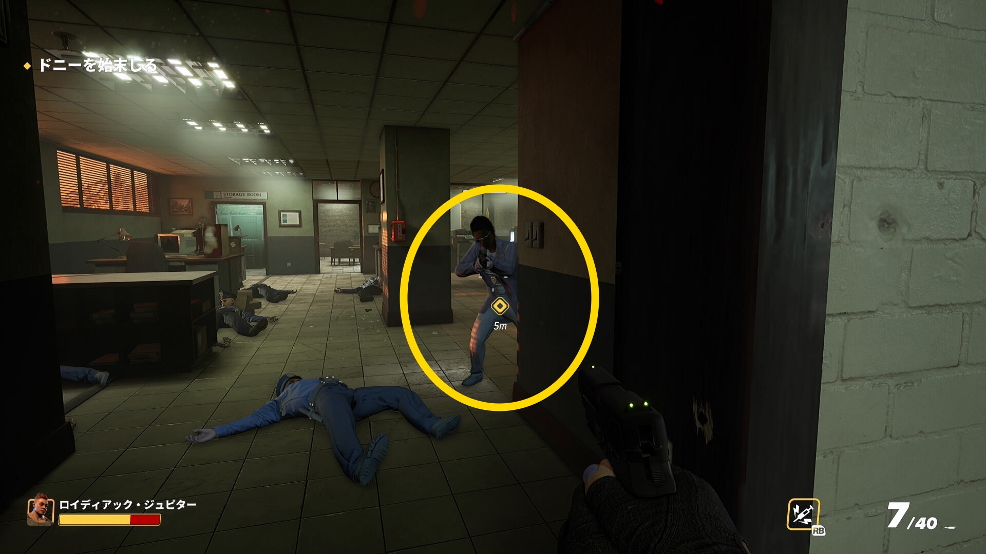 - 警察官をキルしながら階段を登り、1階のオフィスへ