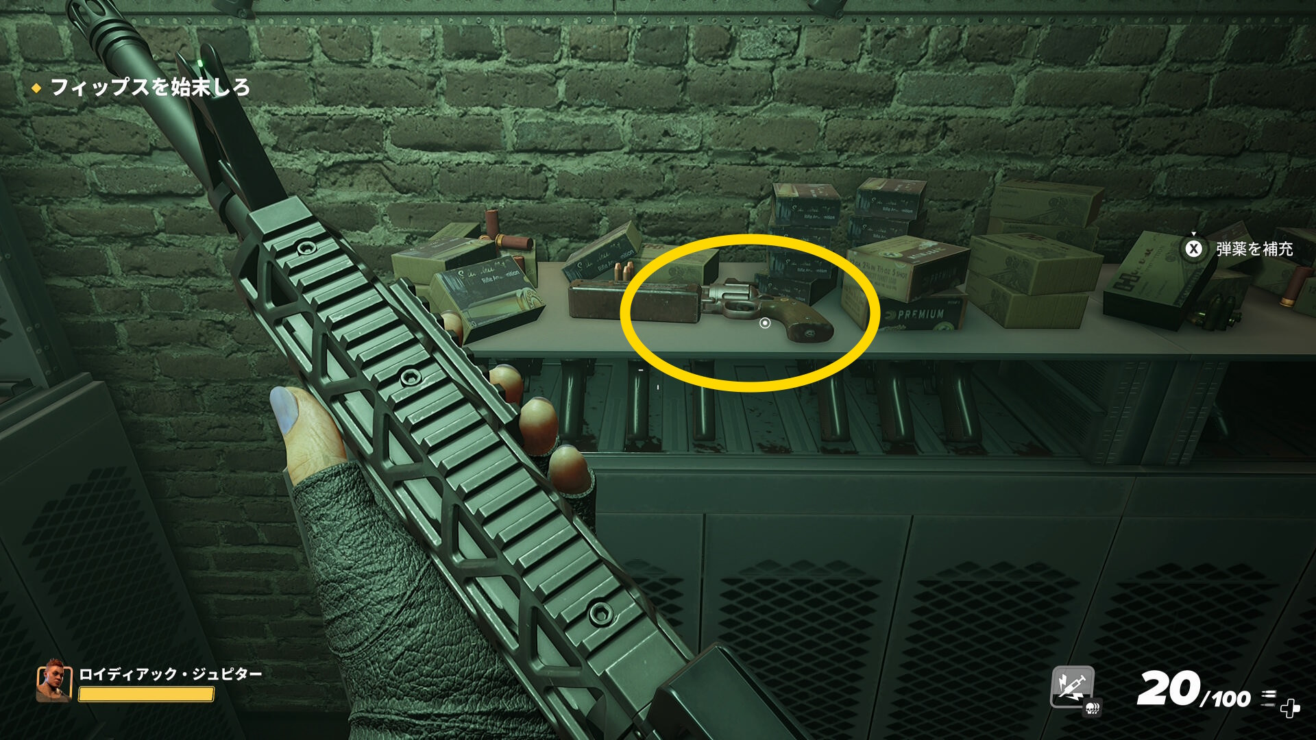 - 正面の武器棚には基本的に Chopper が置かれているが、ランダムで SPX Grenade が置いてあることがある。ラッキーなのでぜひ回収・装備をしておこう