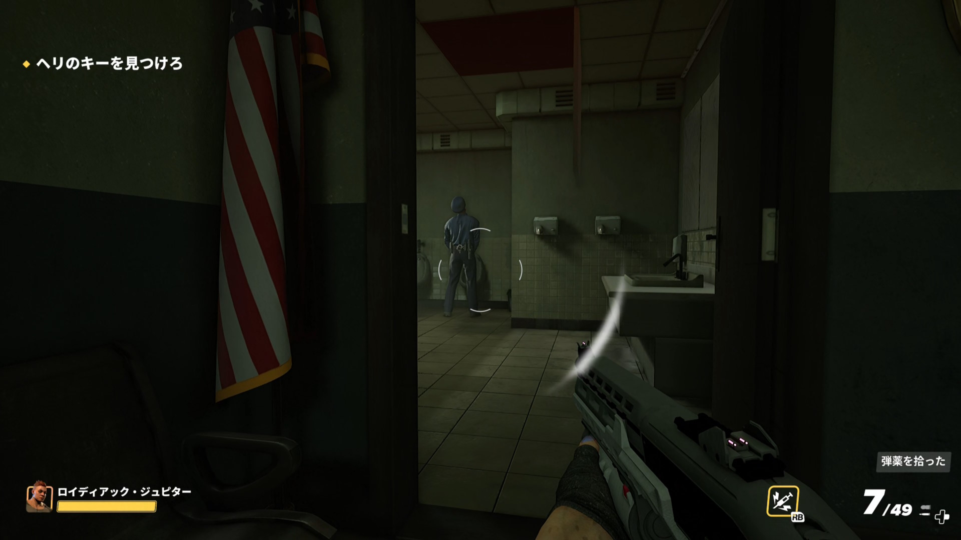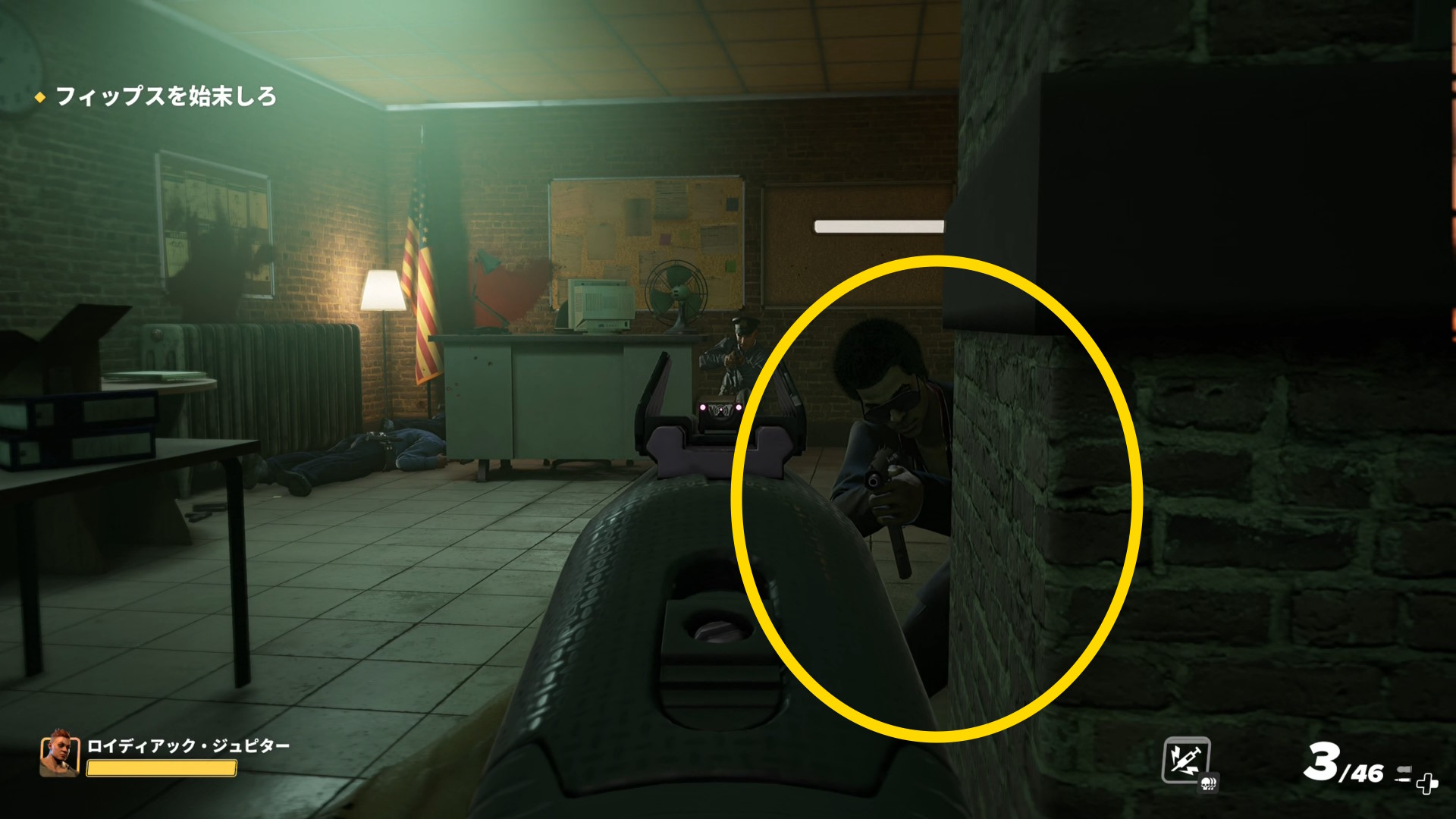 - アメフトヘルメットを被ったボスもいるので注意(マップによっては銃を構えたまま巡回している)