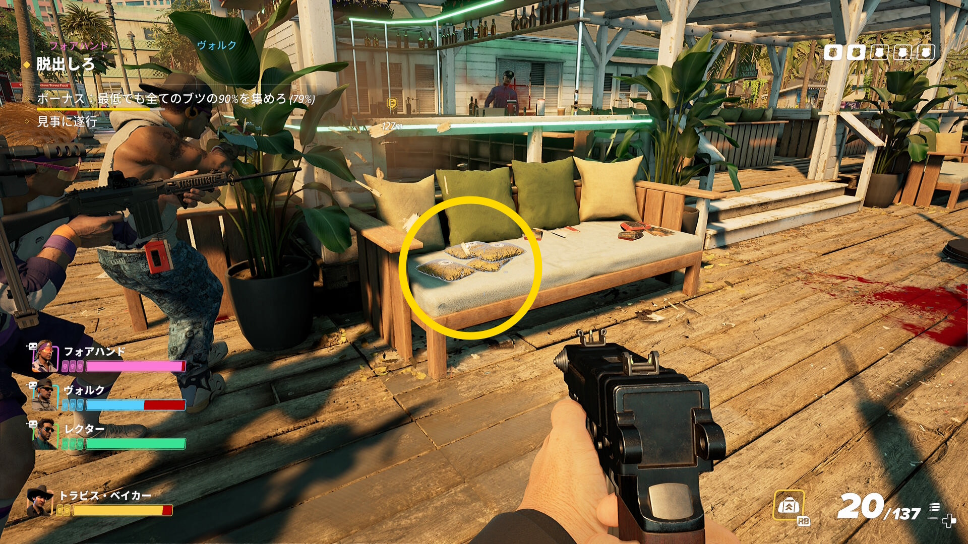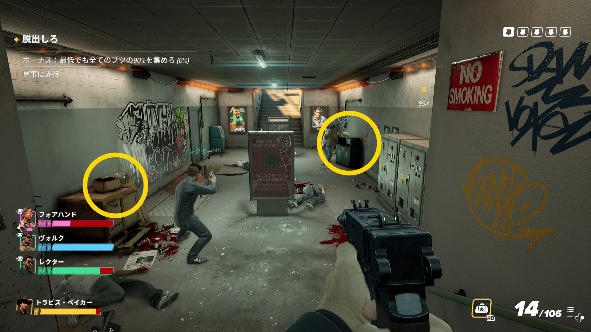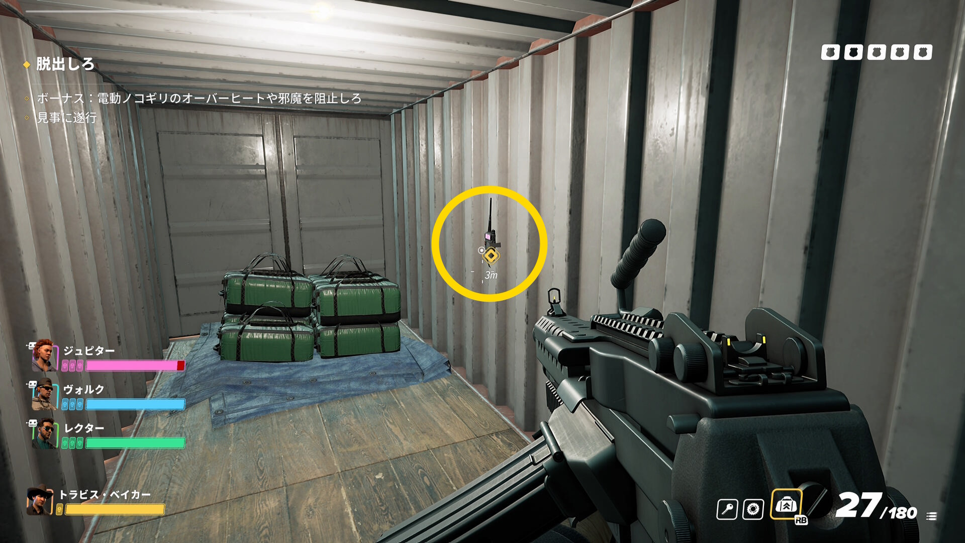 - なお、脱出地点に停まっているバンの近くには5,6人の敵が待機していることが多いので注意すること