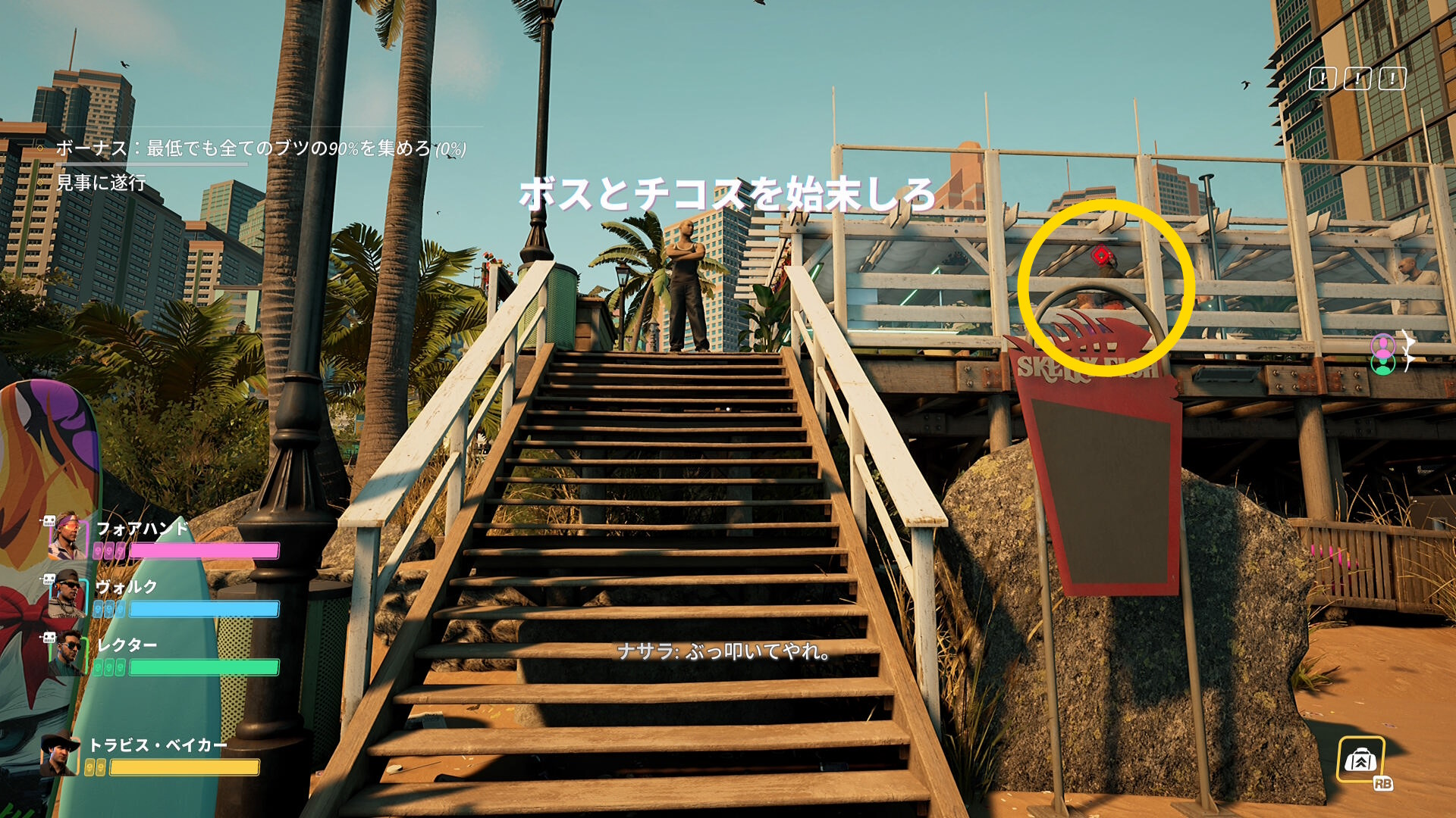 - ボスをキルしたところ、左のベンチの上