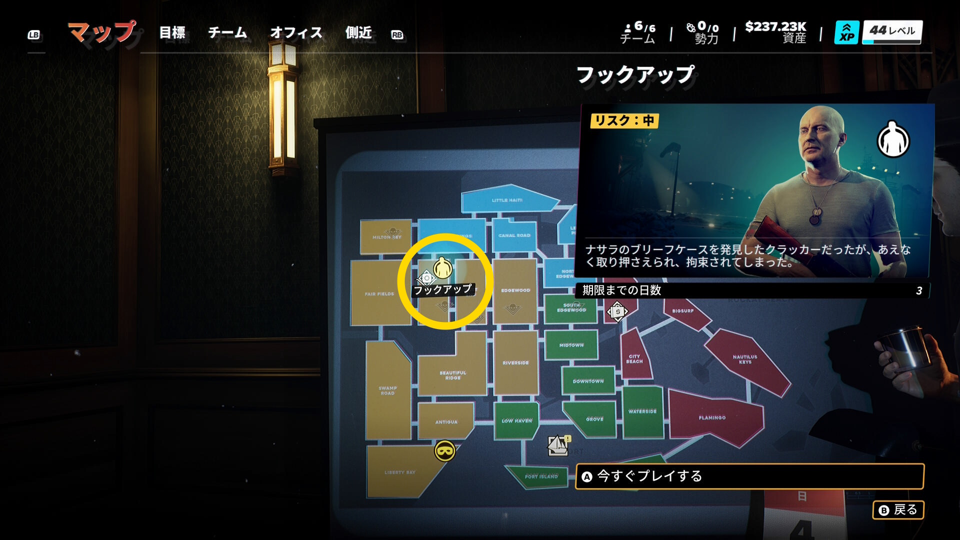 - 各ミッションはリスク低・中・高に設定されているが、翌日にスキップすると難易度が変動する