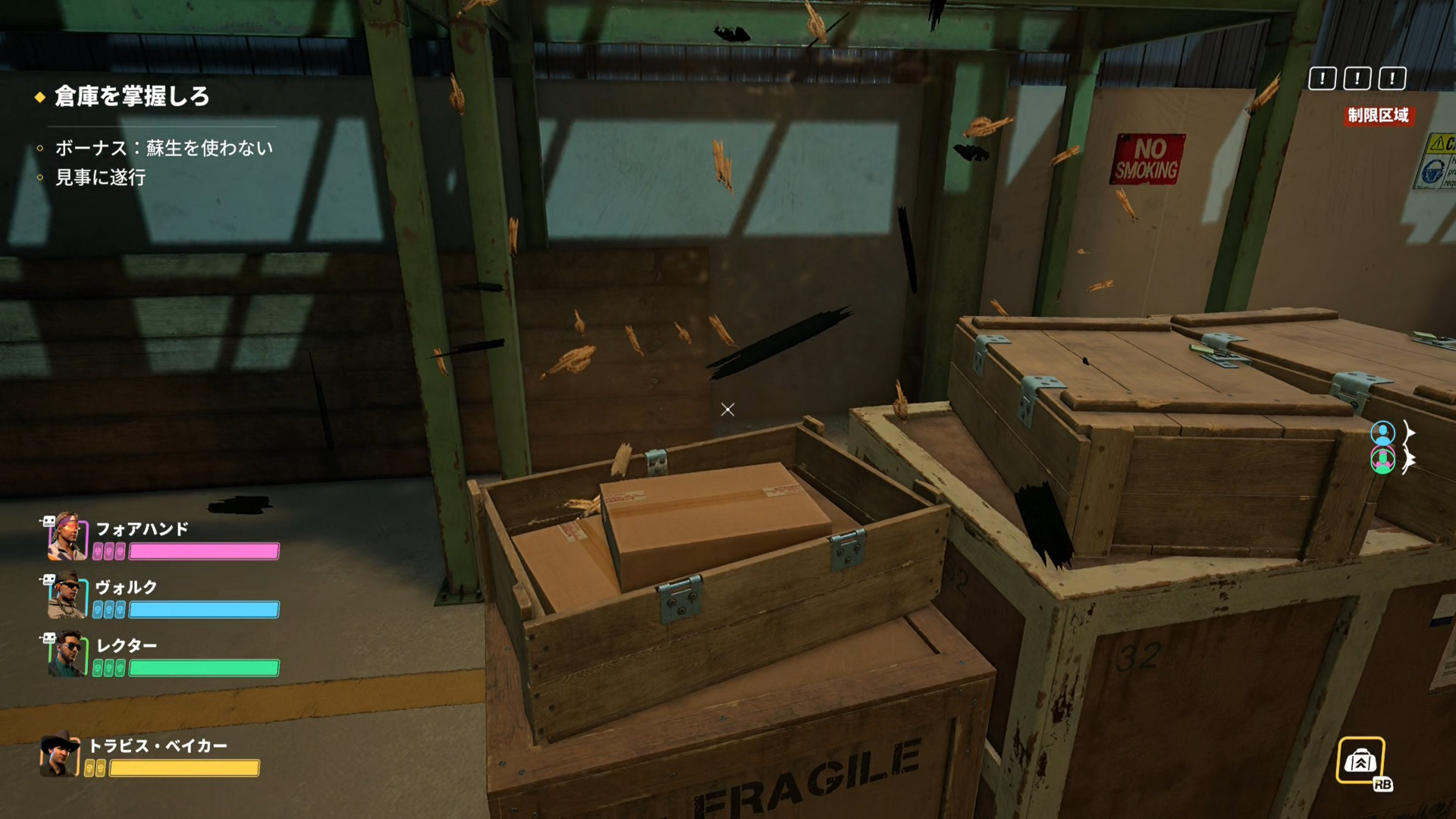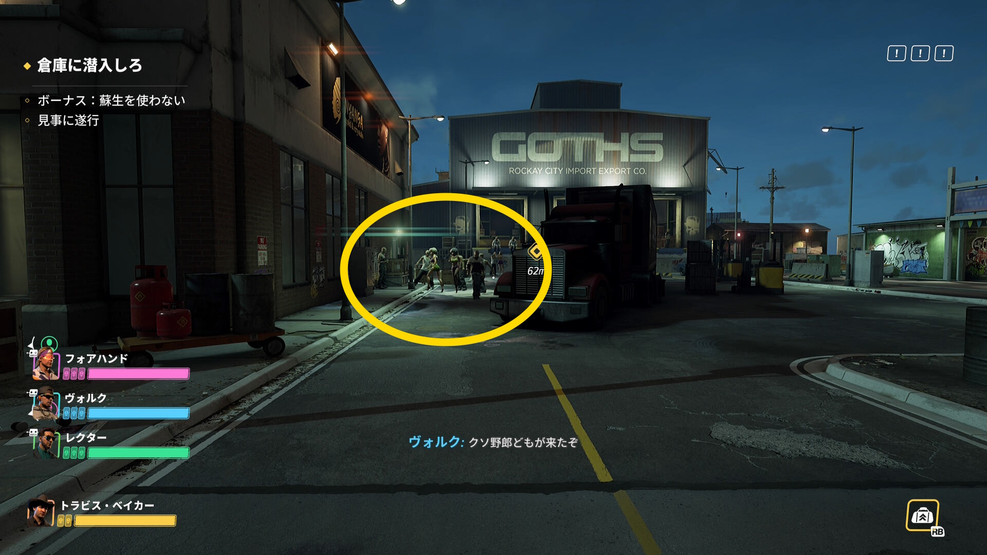 - ガレージになっていて8,9人ほどの敵がいるので殲滅